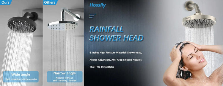 HOSSLLY Rainfall Shower Head High Pressure 360掳 Adjustable - Brushed Nickel