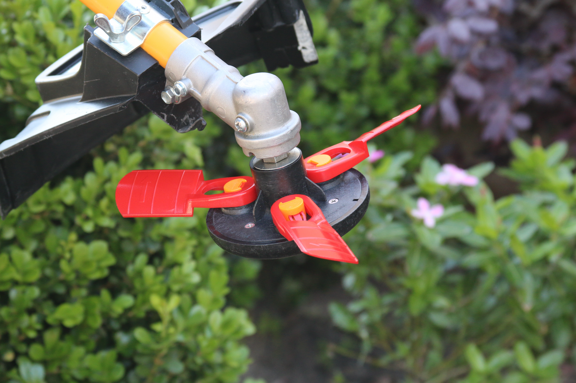 The 1-2-Trim™ offers the fastest blade and trimmer line insertion and replacement ever. Simply push back the trimmer line and load blades to turn your trimmer to a brush cutter in seconds. The pivoting technology absorbs the impact and allows for cutting along edges, fences and driveways without worrying about stopping to change lines. The dual cutting action of the 1-2-Trim™ brings the best of both worlds allowing to change back and forth from trimmer lines to blades without having to replace heads.