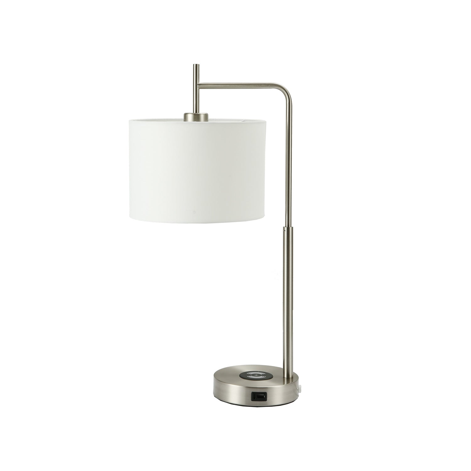 Cedar Hill touch table lamp combines silver metal with a fabric round lampshade. This wireless table lamp is ideal for bedrooms, living rooms, studies, offices and other places. It can be perfectly integrated with any modern style of decoration. It has a beautiful appearance and practical functions. Made of iron, this well-structured table lamp can provide better sturdiness and stability. Will not rust or corrode and can be used for a long time. A table lamp with wireless and USB charging functions. You can put your smart devices on the charging pad overnight for a full charge,such as kindle readers, speakers, tablets . In addition, it has a built-in touch dimmer on the lamp base, so that you can adjust the brightness by the metal material on all side of the lamp. It has 3 levels of brightness (low, medium, and high brightness mode)can create a warm and comfortable lighting.what's More attractive is that it is easy to install, which brings great convenience to your life.