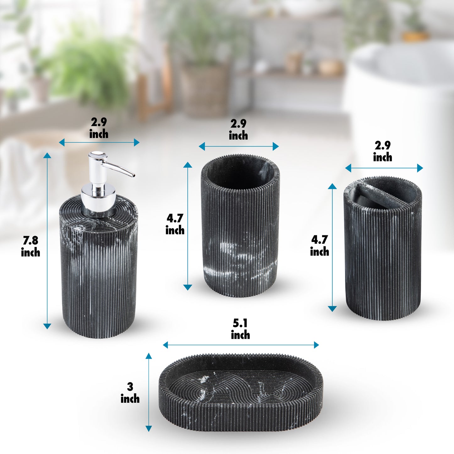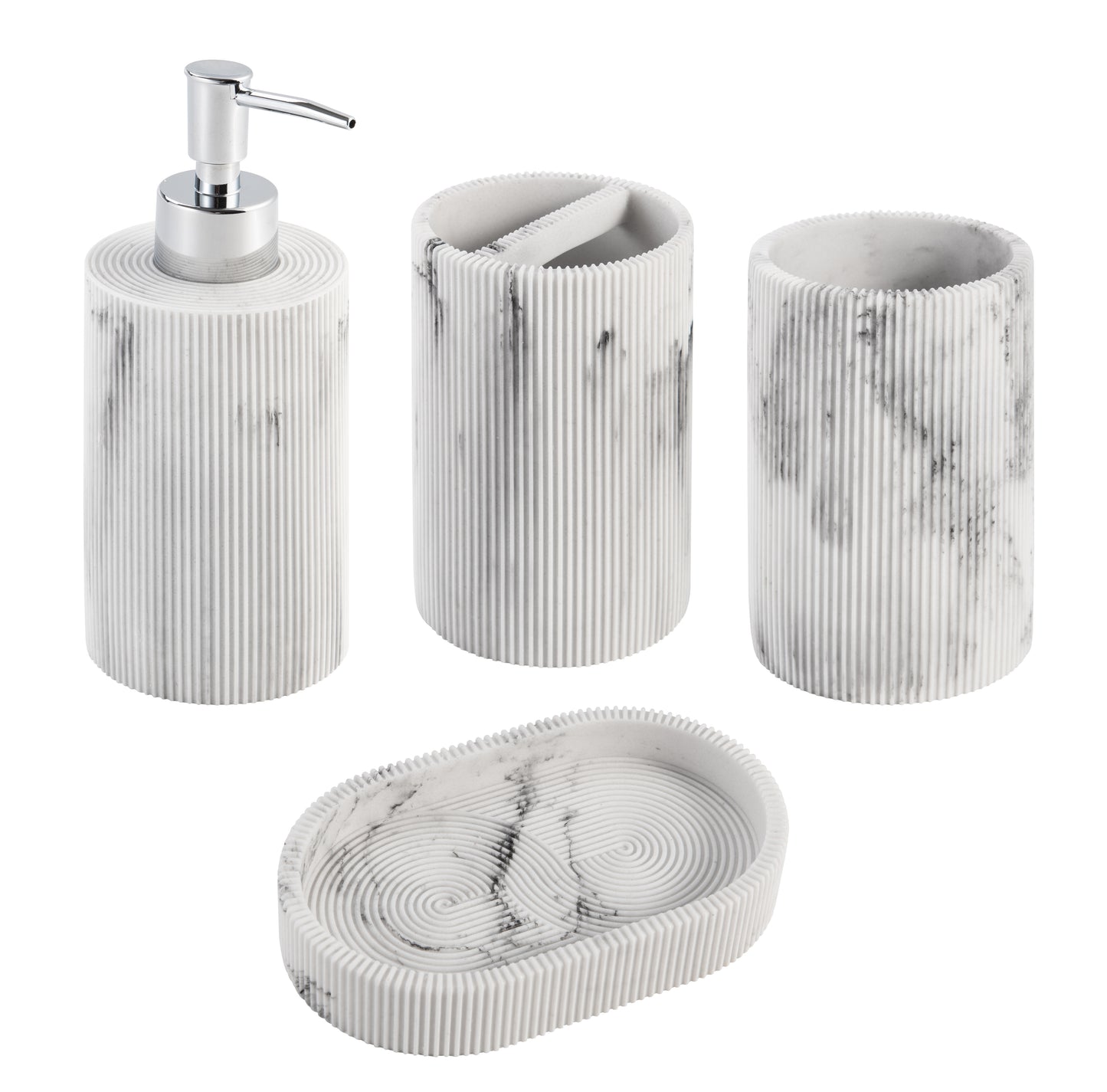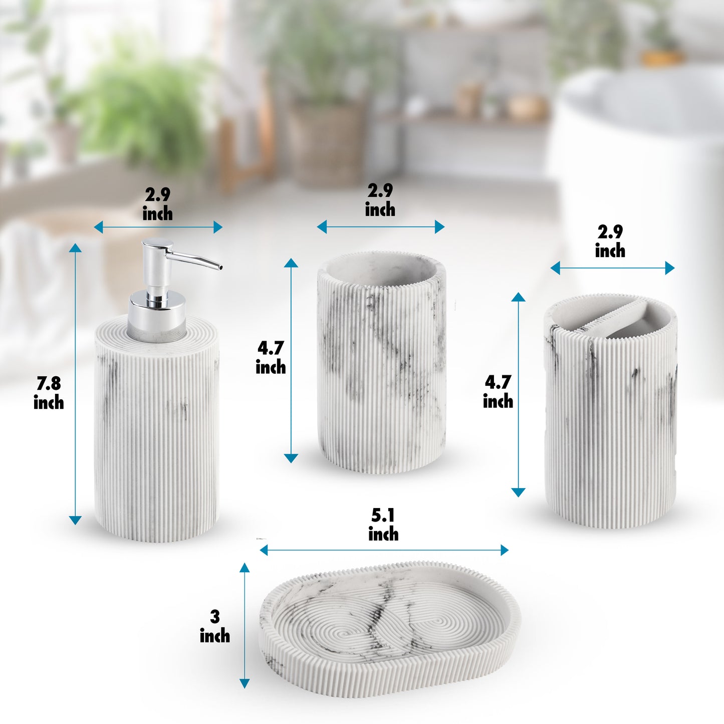 Kralix 4 Piece White Bathroom Accessories Set, Modern Bathroom Soap Dispenser Set, Bathroom Toothbrush Holder Set, Tumbler and Soap Dish, White Marble Bathroom Accessories Set