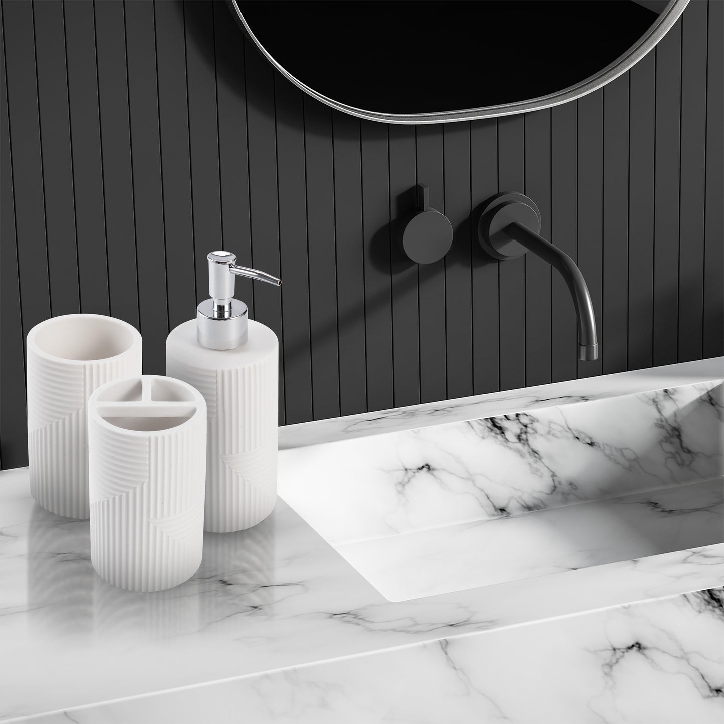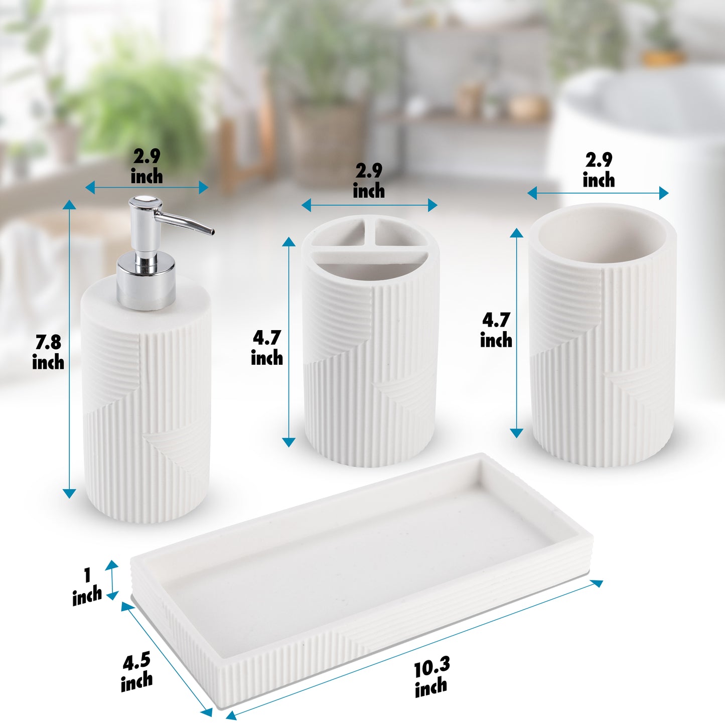 Kralix 4 Piece White Bathroom Accessories Set, Modern Bathroom White Soap Dispenser Set, White Toothbrush Holder Set, Tumbler and Vanity Tray, White Bathroom Accessory Set