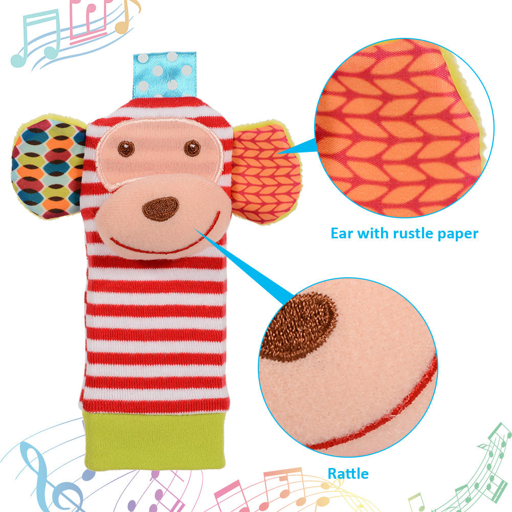 4pcs Socks Rattles(Monkey, elephant, pig, puppy)