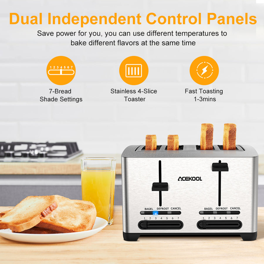 ACEKOOL Toaster TA1 Stainless Steel 4-Slice 7 Shades Toaster UK Plug