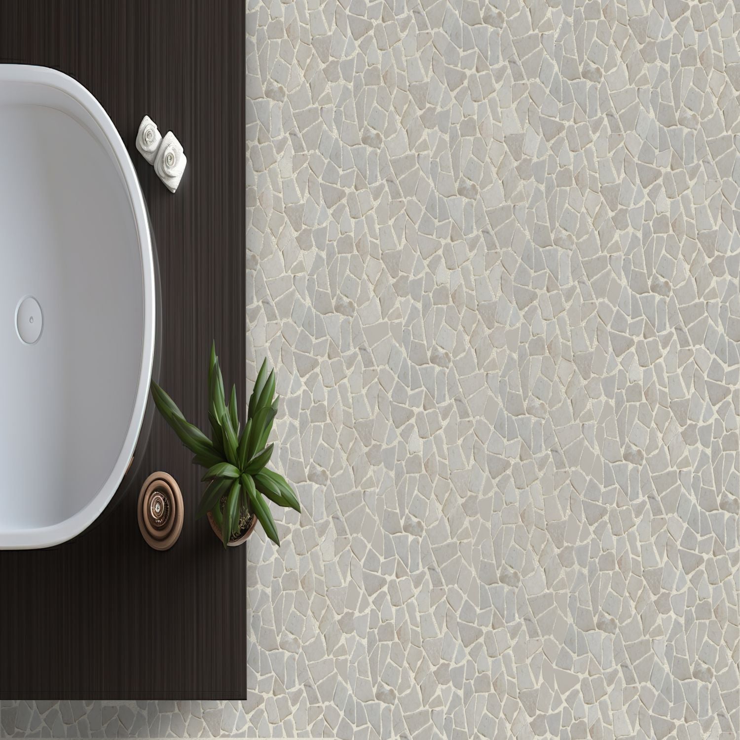 Marble mosaic tile made from irregular stones with touchable texture. With its organic, au natural look, it’s perfect to use on shower floors, decks, or pools.