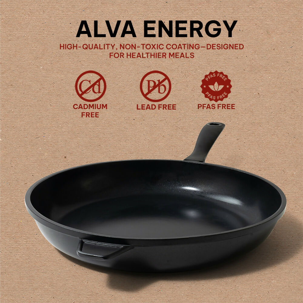- ERGONOMIC DESIGN FOR COMFORT: The Alva Energy Nonstick Frying Pan features a stay-cool handle, providing a secure grip for safe and easy maneuvering. Enhance your cooking experience with this user-friendly nonstick pan.
