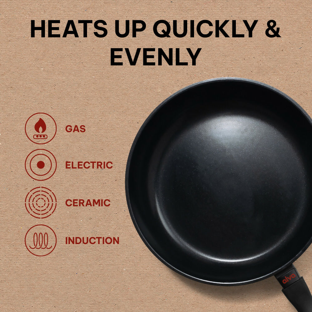 - ERGONOMIC DESIGN FOR COMFORT: The Alva Energy Nonstick Frying Pan features a stay-cool handle, providing a secure grip for safe and easy maneuvering. Enhance your cooking experience with this user-friendly nonstick pan.