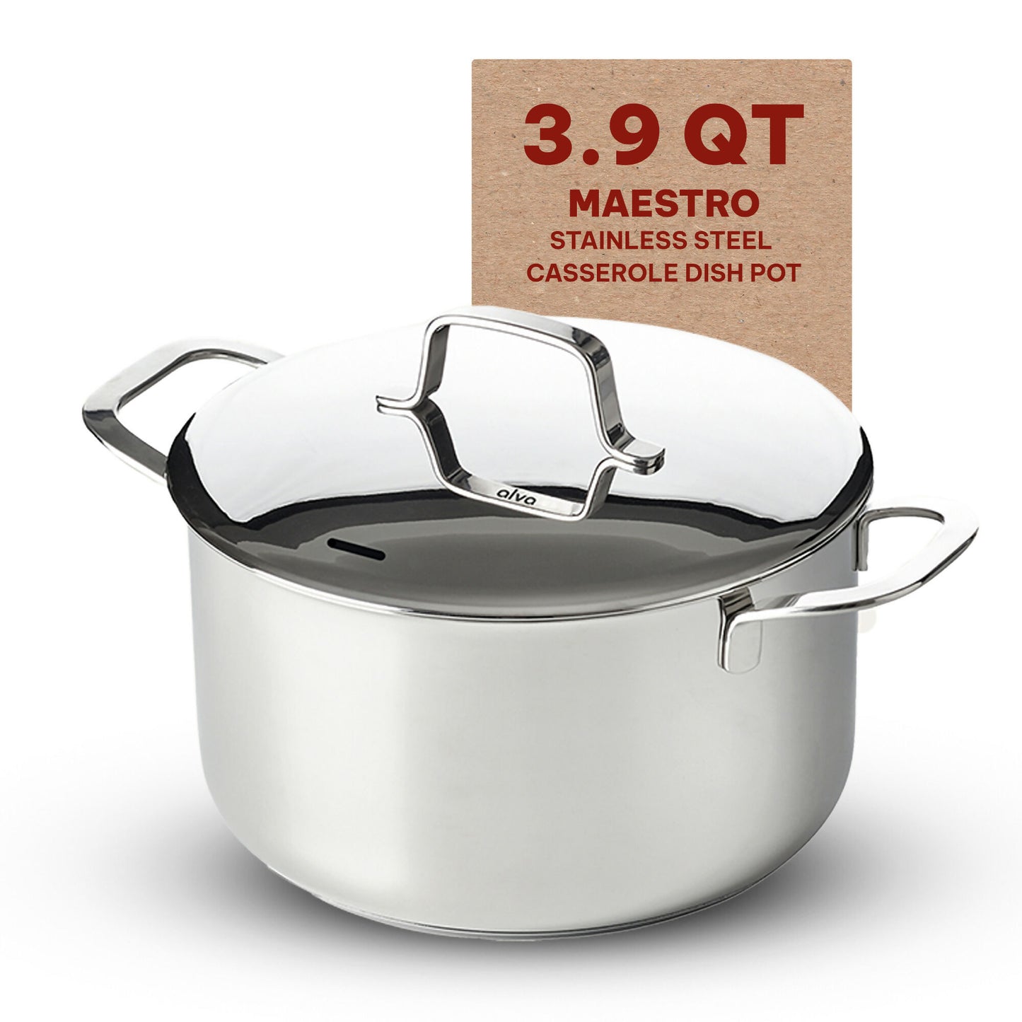 Alva Maestro - Stainless Steel Casserole Pot with Lid - Non Toxic Cookware, Induction Compatible, Versatile Kitchen Pot, Soup Pot, Stock Pot with Lid for Stainless Steel Cookware Set - 4.0 QT