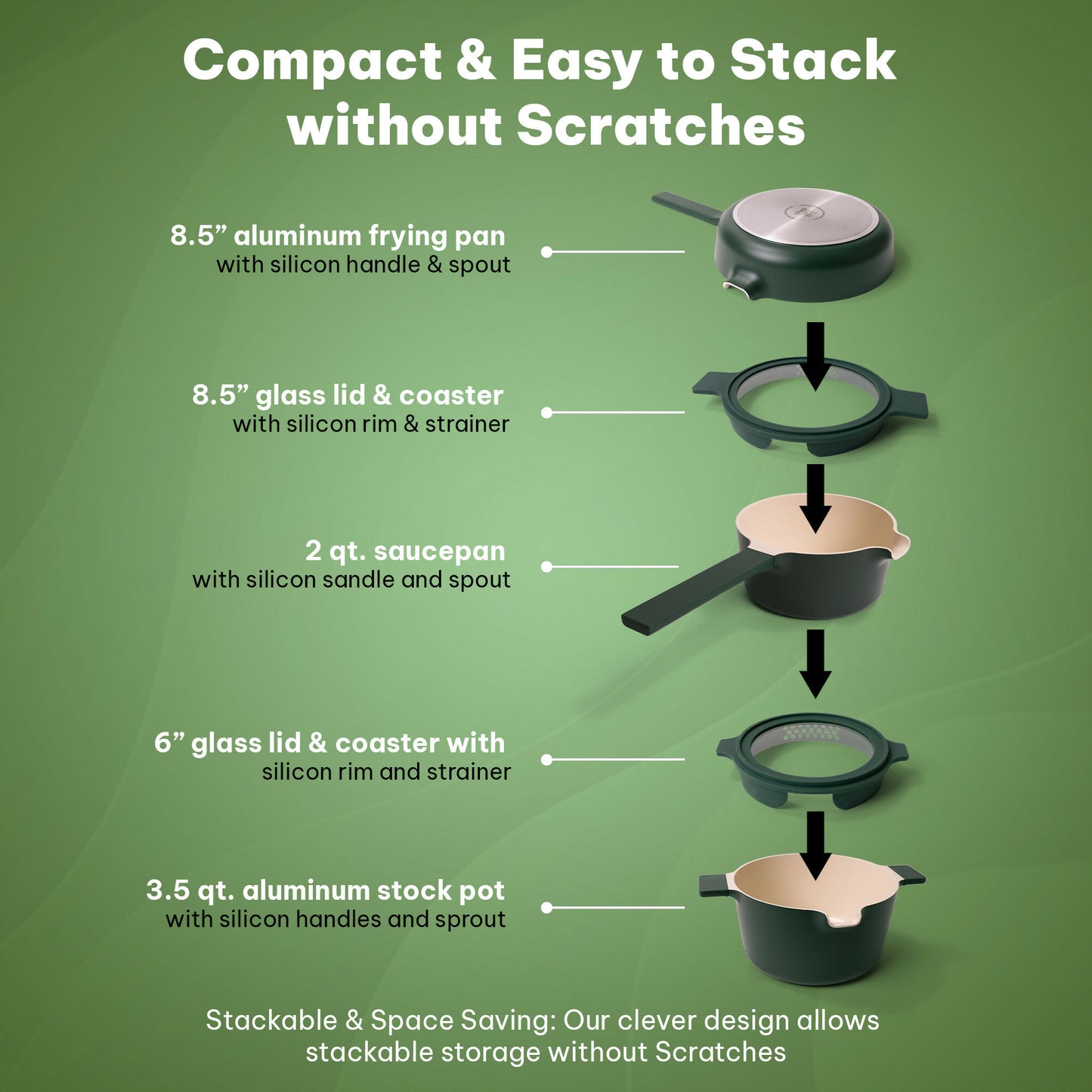 Alva Neat 5-in-1 Cookware Set - Forest Green
