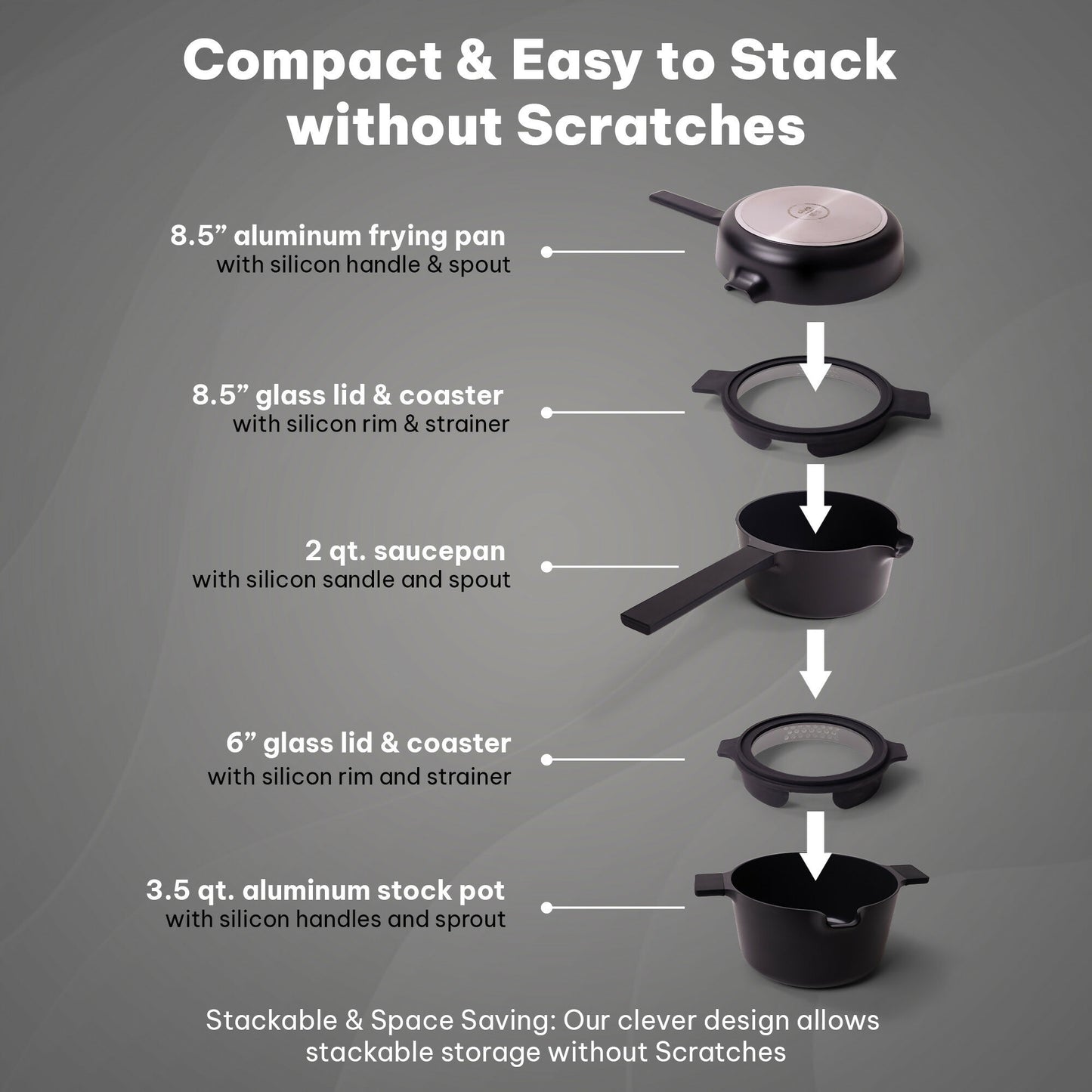 Alva Neat 5-in-1 Cookware Set - Matte Black