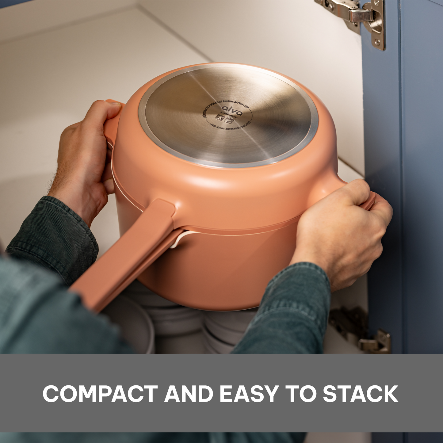 Experience the perfect blend of innovation, convenience, and sustainability with Alva cookware. Designed for modern kitchens, our cookware offers excellent neatability, preventing scratches when stacked. With built-in features like a versatile lid that eliminates the need for a strainer, drip-resistant spouts, and stay-cool handles, cooking has never been easier. Crafted from recycled aluminum and PFAS-free, Alva cookware ensures safe, healthy meals every time.