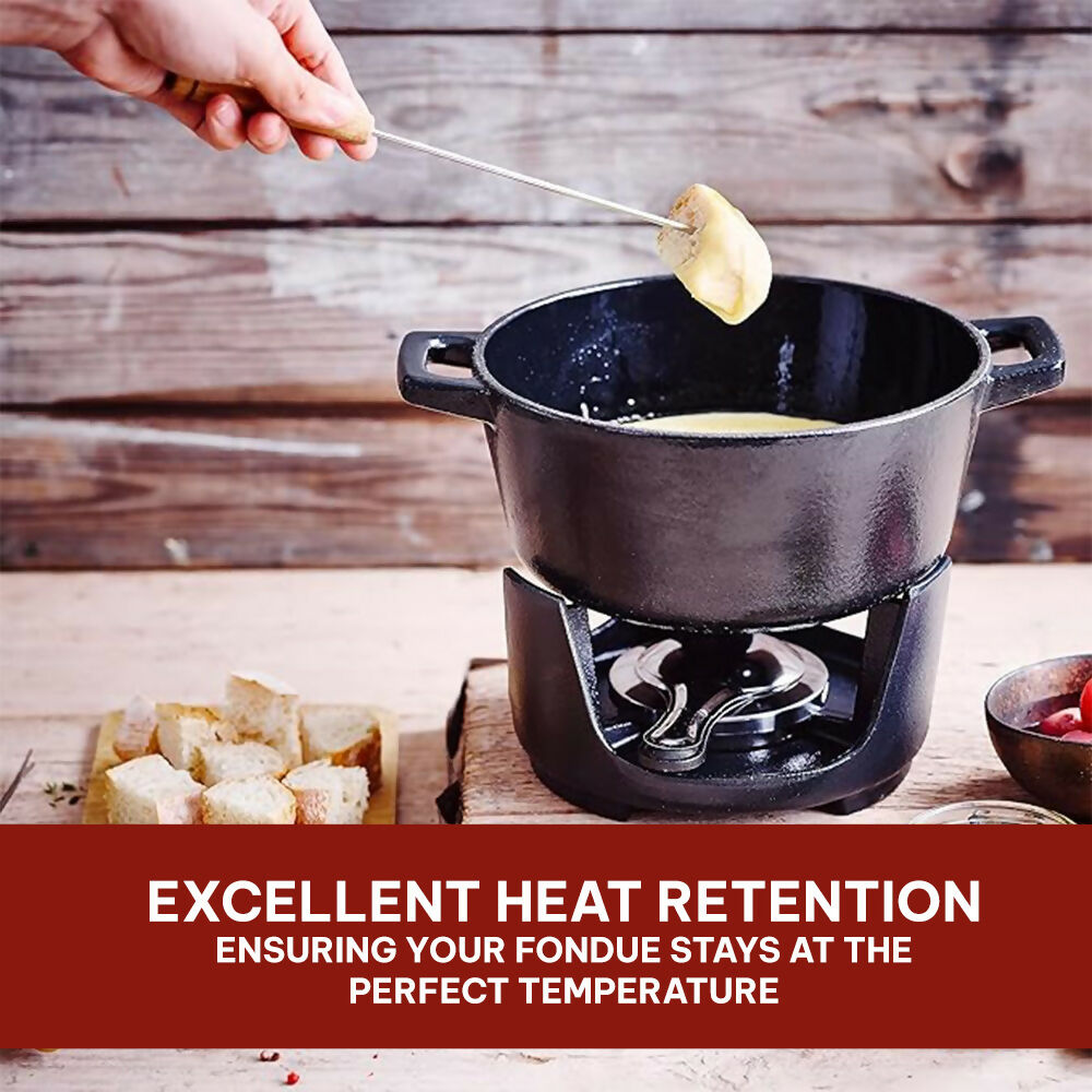 - VERSATILE FONDUE EXPERIENCE: Enjoy a delightful dining experience with our cast iron fondue set, perfect for cheese melts, chocolate, and meat fondues. This fondue pot set seamlessly transitions between different types of fondues, making it an ideal choice for food warmers at parties and gatherings, ensuring a versatile culinary adventure for all occasions.