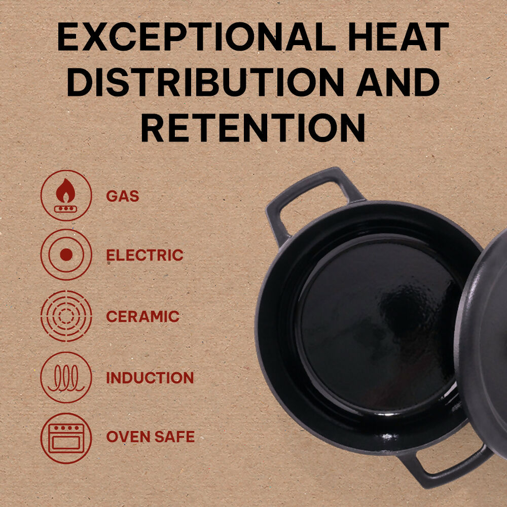 - ROBUST CONSTRUCTION: Our cast iron dutch oven features a three-layer scratch-resistant enamel coating, ensuring durability and easy cleanup. This cooking pot is built to last, making it a staple in your cast iron cookware collection.
