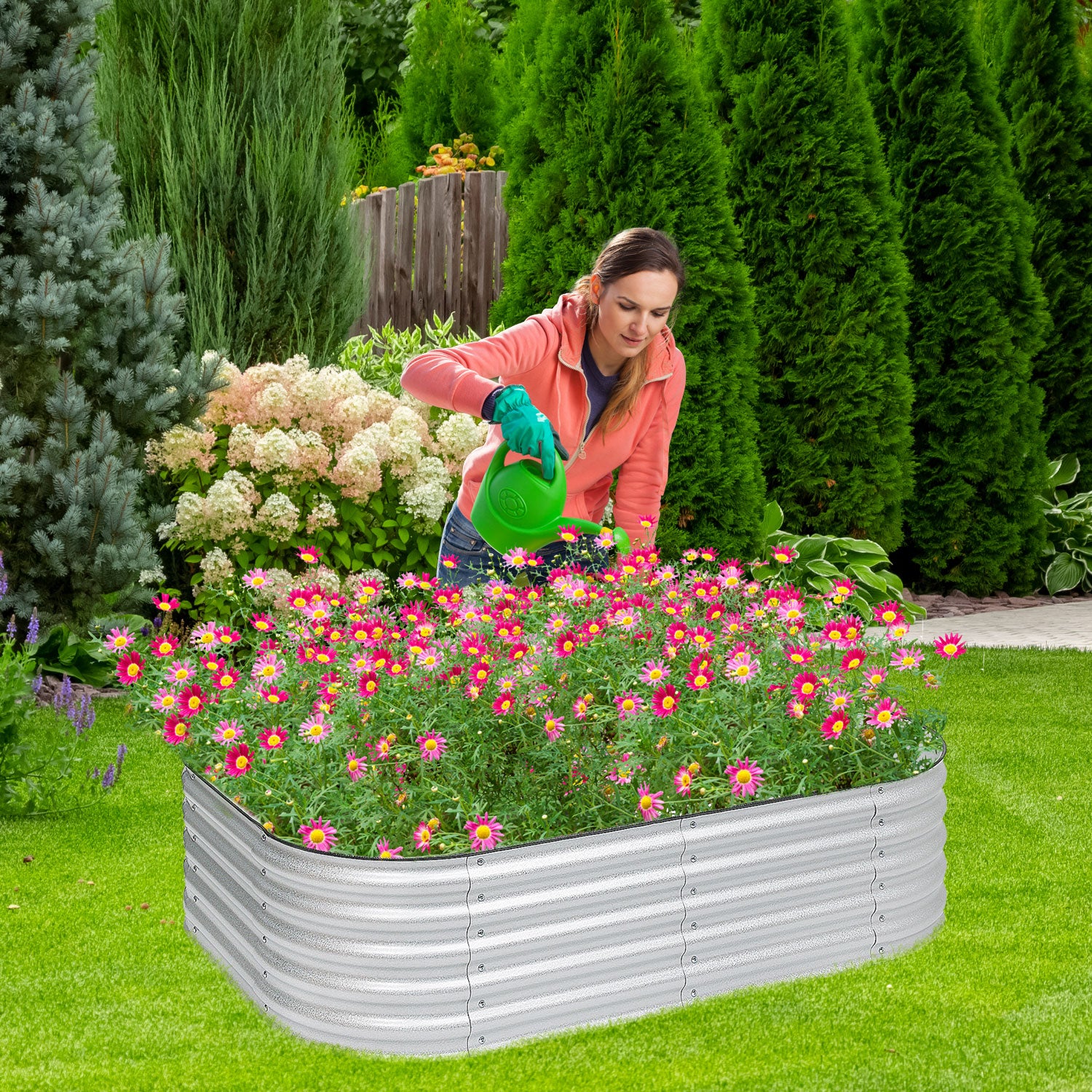 6-in-1 Modular Metal Raised Garden Bed (Silver)