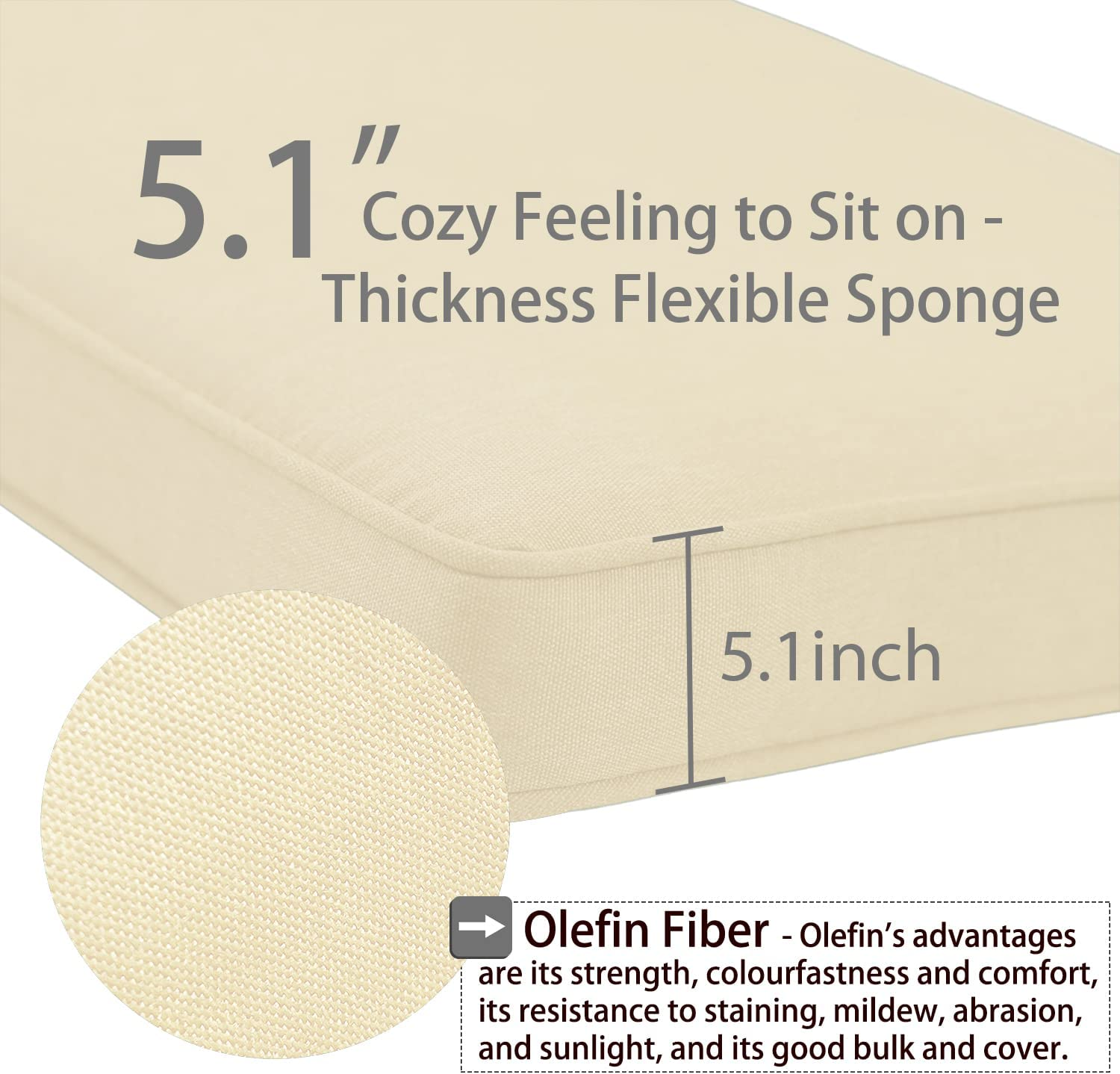 Patio Deep Chair Cushion - Set of 2 - Total 6 pieces (Beige)