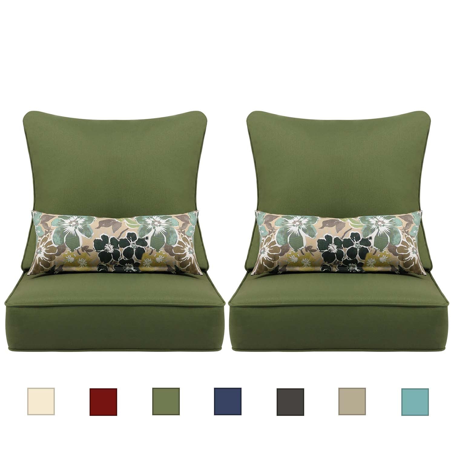 Patio Deep Chair Cushion - Set of 2 - Total 6 pieces (Green)