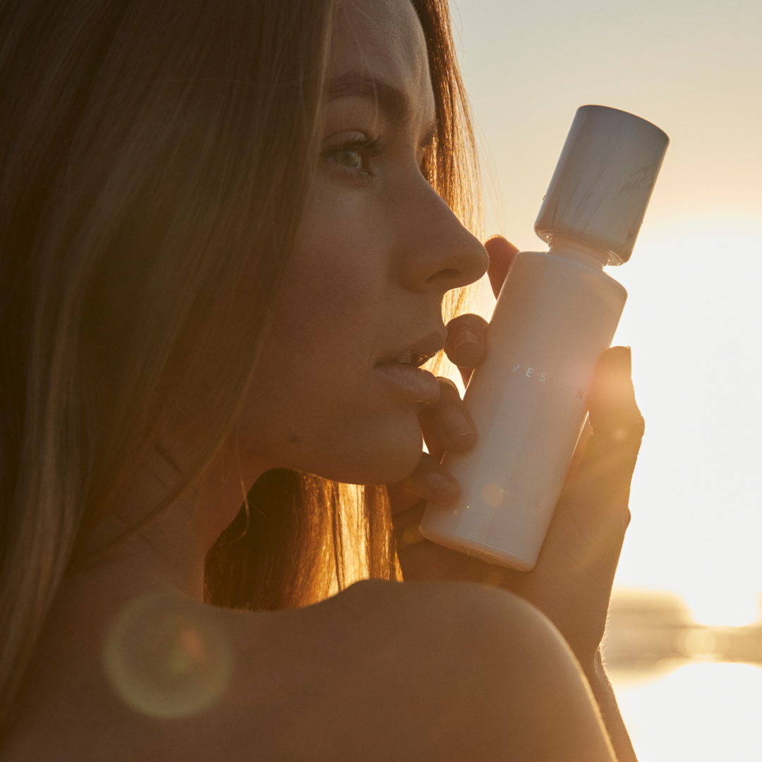 The Ritual: Shake well before use. Hold bottle 8in away from the skin and spritz 4 – 6 times. Focus on the warmest areas of your body, such as the chest, neck and pulse points. Re-apply every 3 – 4 hours or as needed.
