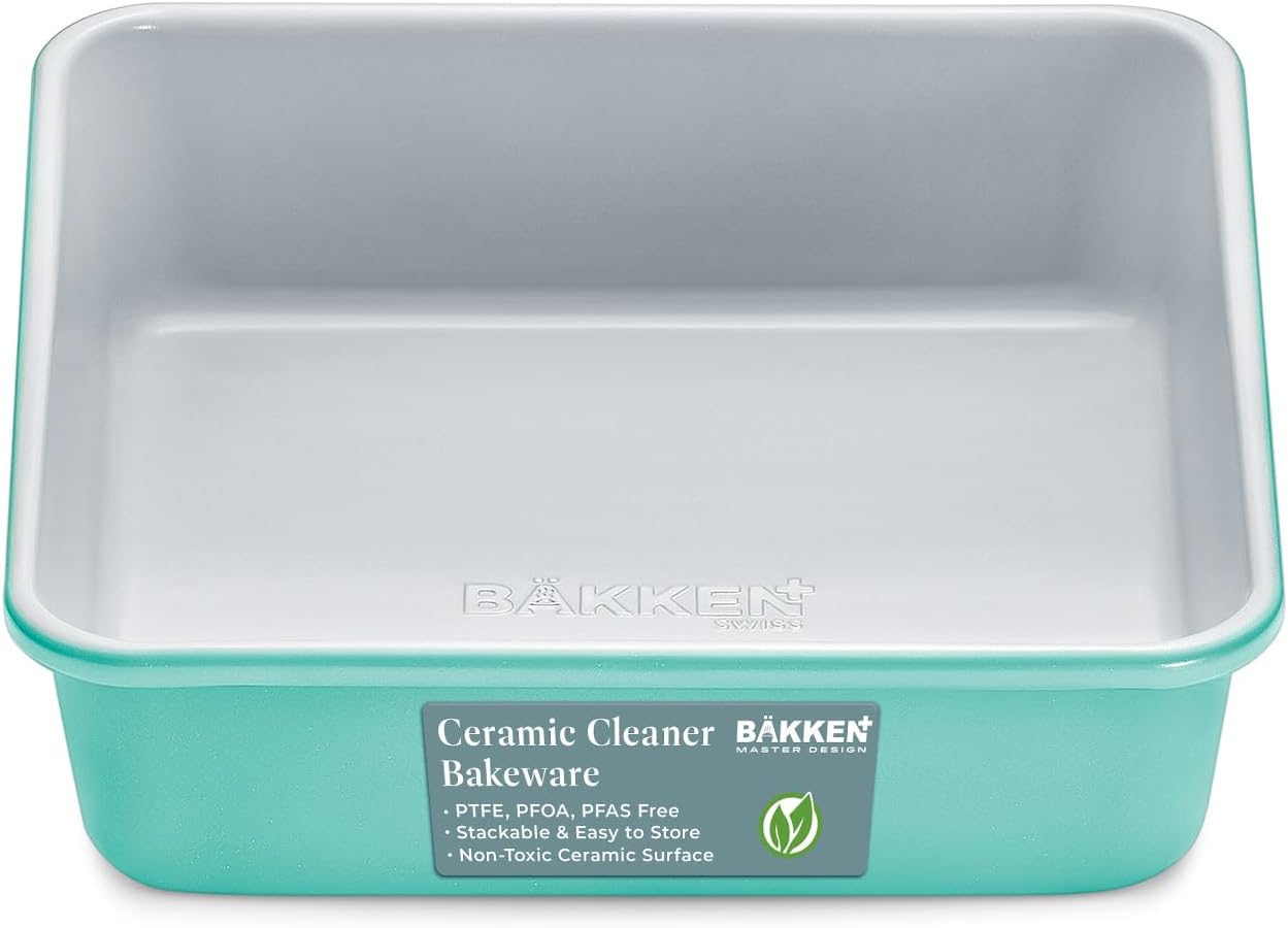 BAKKENMASTER Square Cake Pan - Aluminized Steel, Ceramic Non-Stick Coating, Non-Toxic, Ideal Size, Heavy-Duty, Elevate Your Baking with Durability and Style