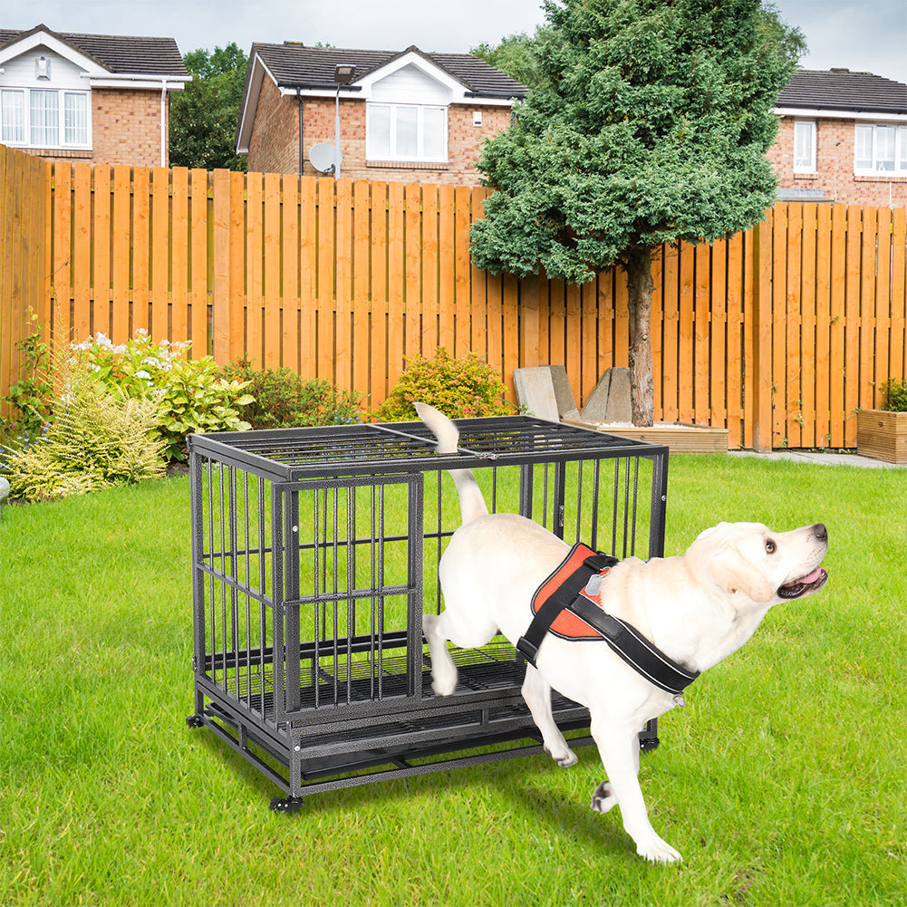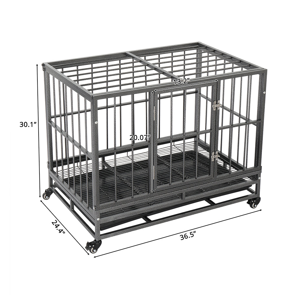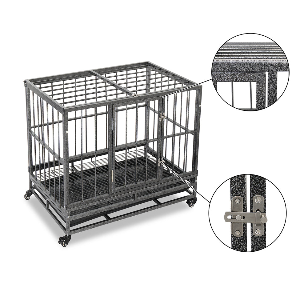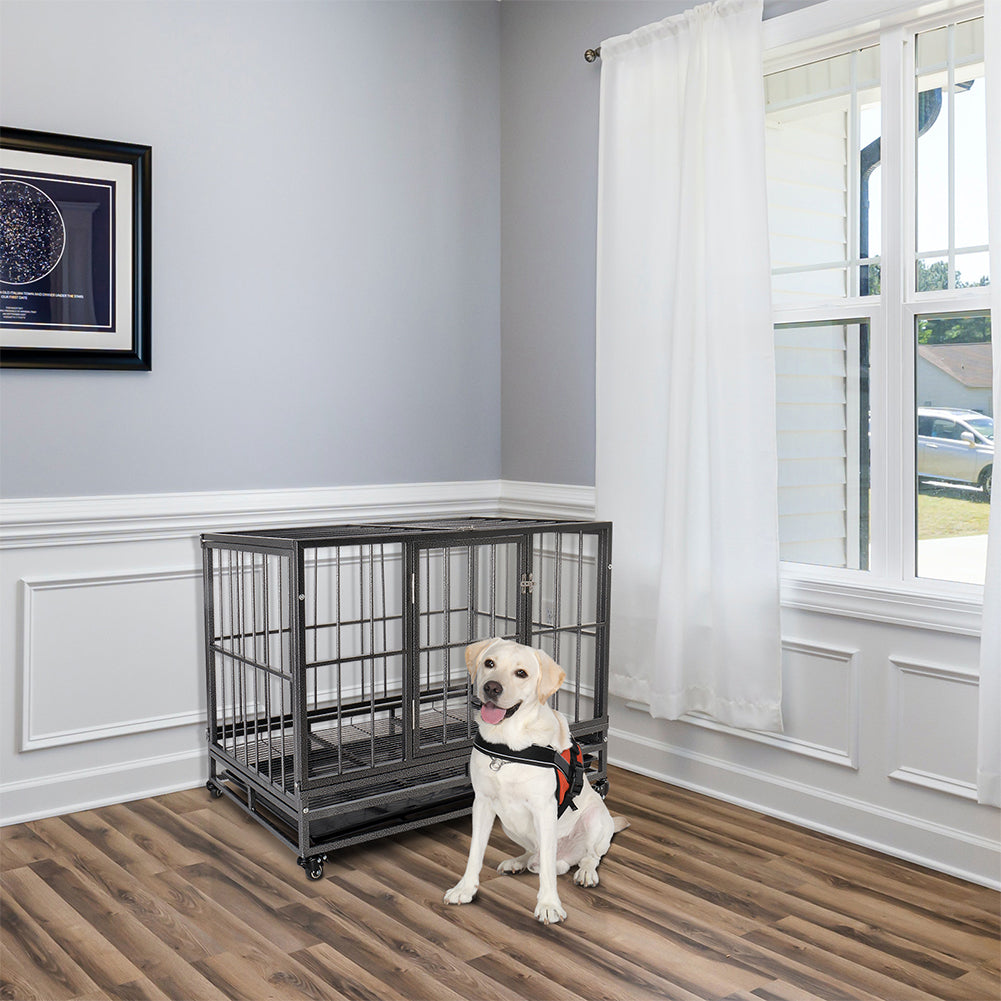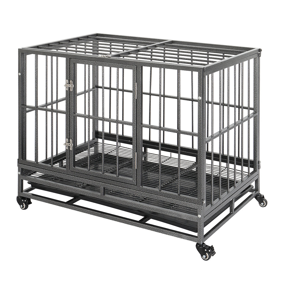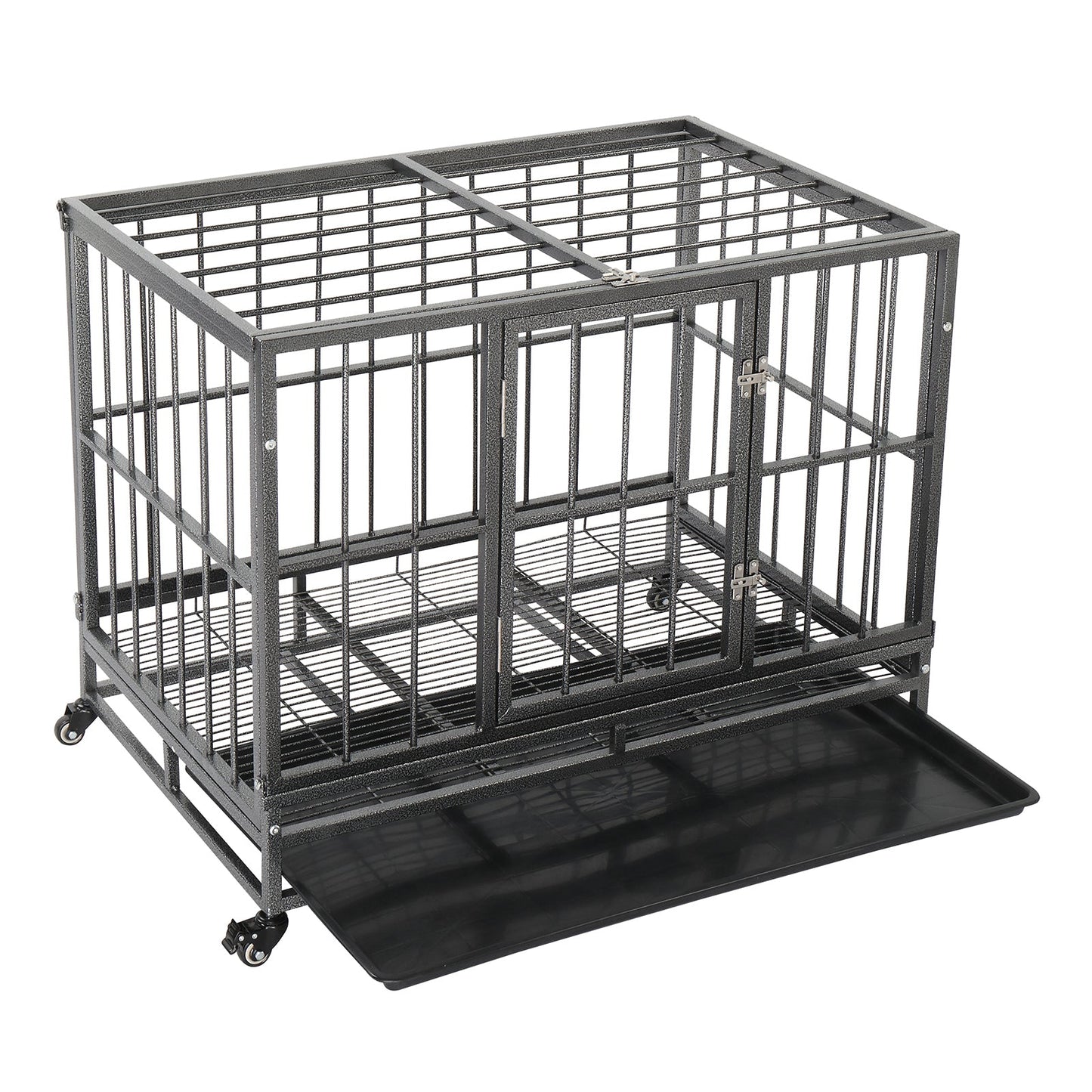 '--High quality: Heavy duty steel frame, constructed using a 3/4" frame and 1/2" diameter tubes made of top quality steel--Equipped with four casters for easy moving and two of them are lockable to avoid accidental move--The grate floor and steel tray on the bottom can be slide out for easy cleaning--Double door design with one on top and the other in front allow for easy access--Front Door with two latches for easy access--Easy to assemble: Folds down easily, take it anywhere