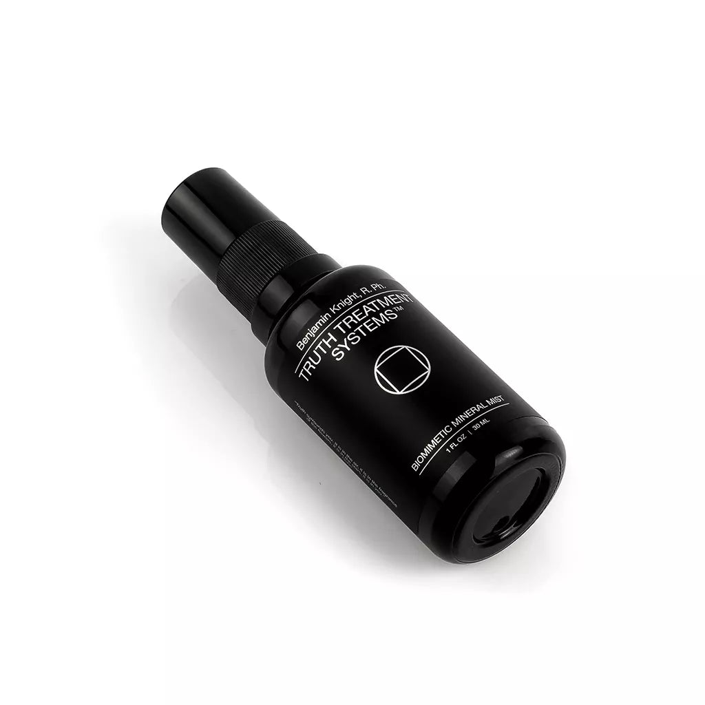 Biomimetic Mineral Mist is a 100% active hydrating mist that contains a potent fulvic mineral solution which may support anti-inflammatory, anti-microbial, and antioxidant effects. This electrically active mineral solution has a unique capacity for penetration, delivering its benefits deep into skin tissues and into the cells themselves. When used with other Truth Treatment Systems, Biomimetic Mineral Mist facilitates application and improves the efficacy and cellular absorption of Vitamin C, Retinol and other active ingredients in Truth Treatment Systems.