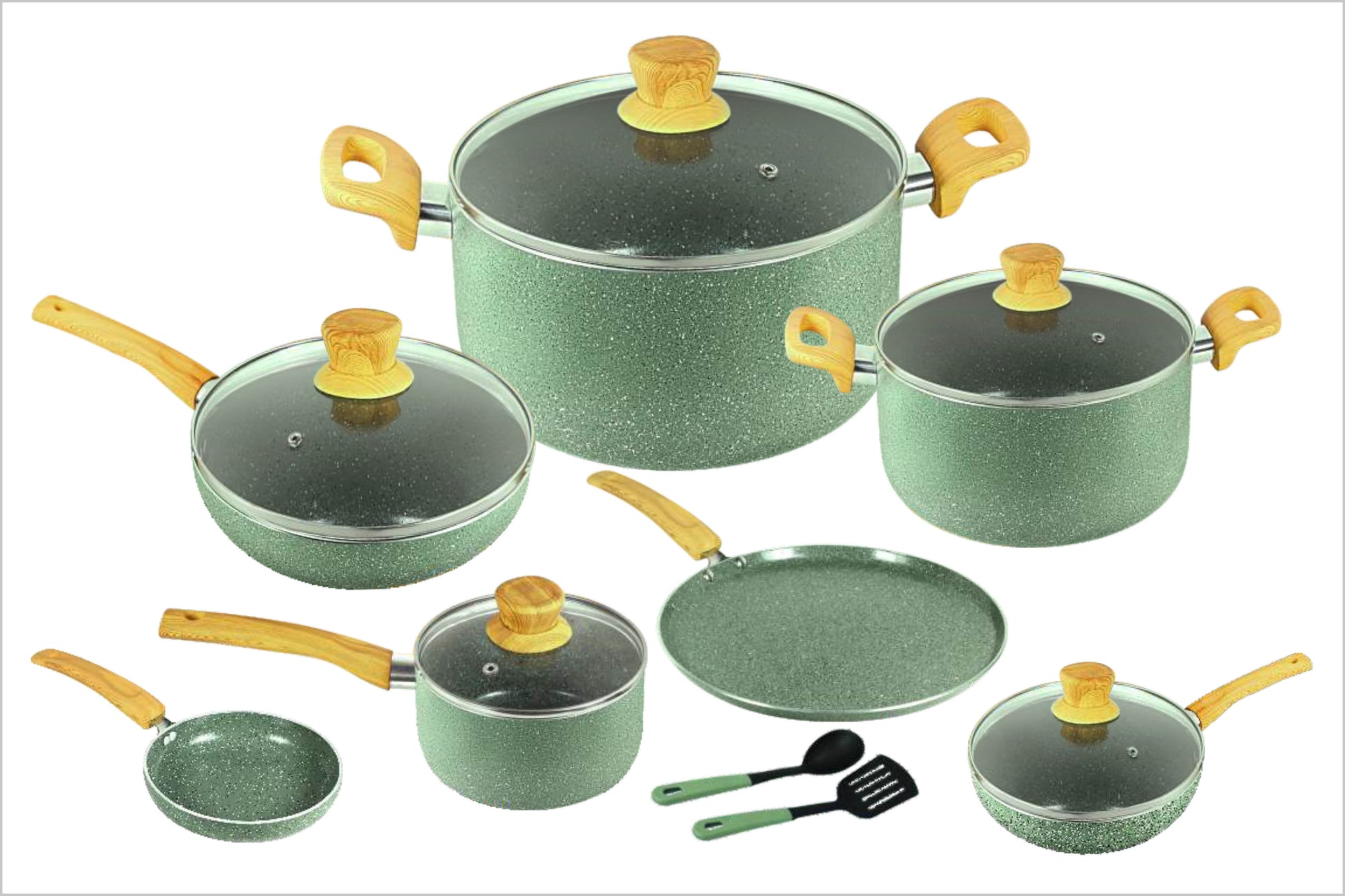 Blaze Granite Nonstick Cookware Green 12 Piece Set
