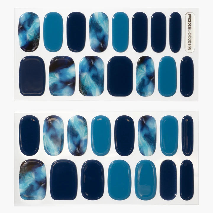 The quest to find the perfect blue nail design ends here. We paired two solid colors– navy blue, and steel blue– with dreamy marbleized accent nails to create an out-of-this-world combo. No matter where you go this summer it will be all eyes on blue.