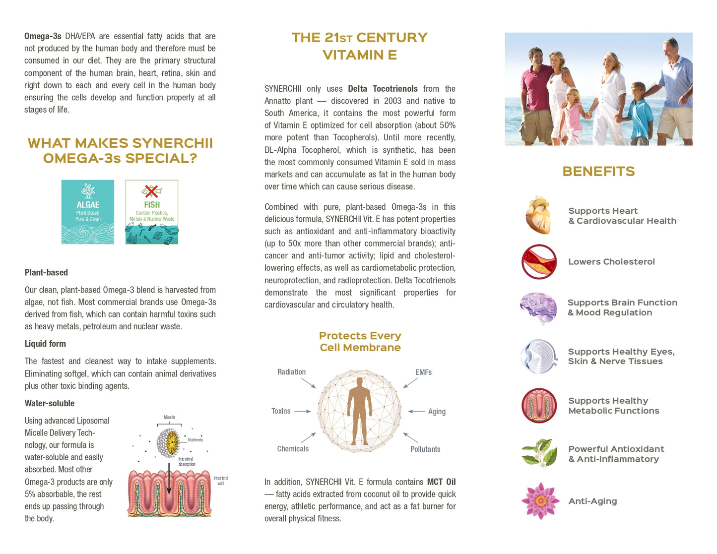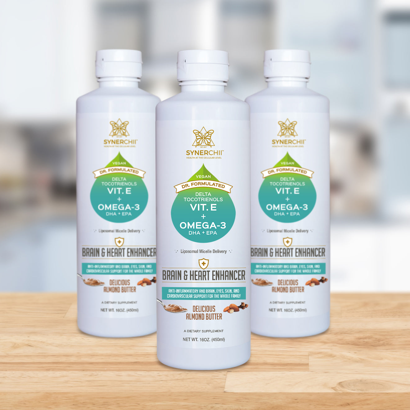 Plant based Omega-3 DHA and Vitamin E formulated with Delta Tocotrienols from Annatto plant — the rarest and most powerful antioxidant on the planet (more potent than any other forms of Vitamin E). Optimized for cell absorption in this delicious formula to provide the ultimate protection for every cell in your body.