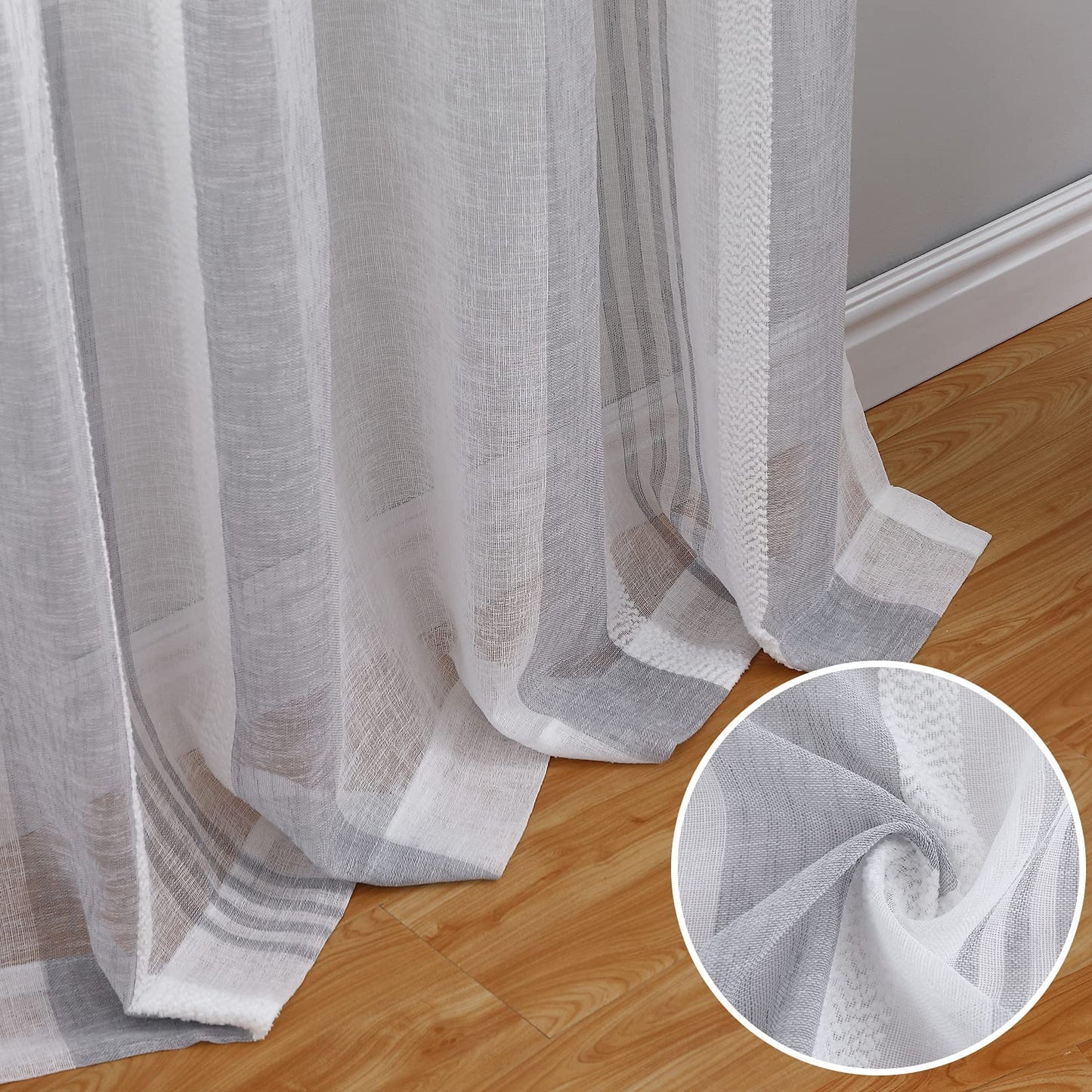 Our sheer curtains are made of premium faux linen textured fabric allows the curtains natural down, the yarn dyed weaving technology makes a double sided fabric, brings you the elegant and natural feeling, adds comfortable atmosphere into your room.