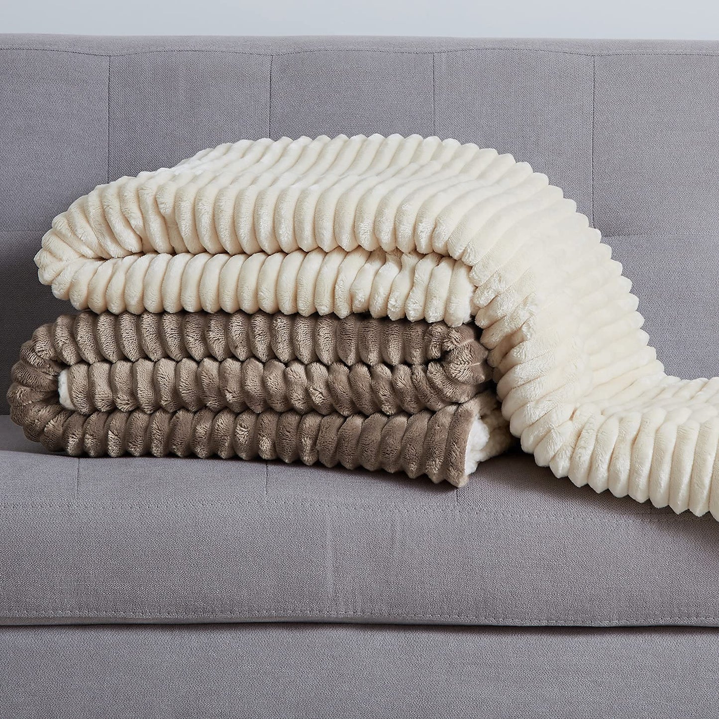 The striped sherpa flannel throw blanket (50"x60") is great to snuggle up while drinking coffee and reading books, serves as a great place to play on, and is perfect for sleeping with at night. Just like a coat keeps you warm when you're outside to stay nice and toasty in the harsh winter months - Tuck in our super soft bed blanket between comforter and sheet to create a special, extra pocket of coziness.