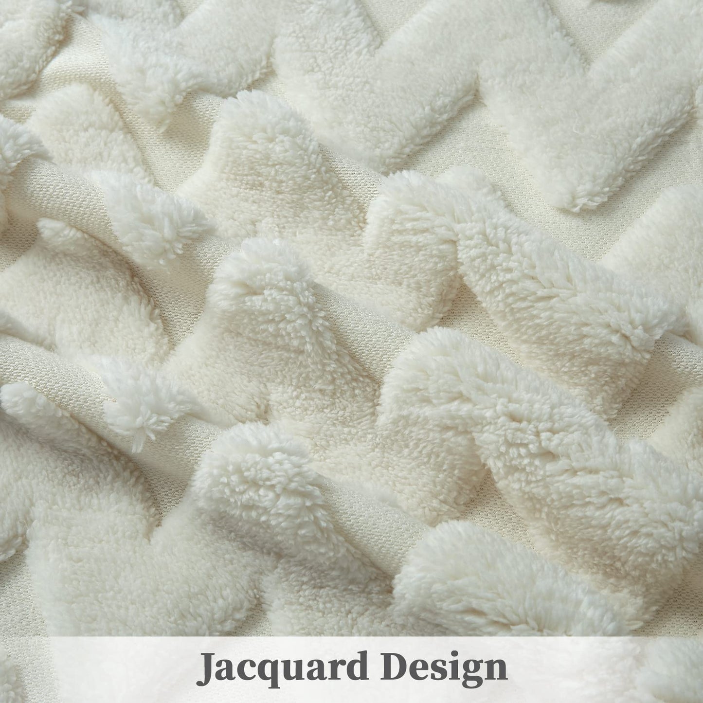 CAROMIO Sherpa Fleece Soft Plush Jacquard Fluffy Throw Blanket Creamy White 50" x 60"