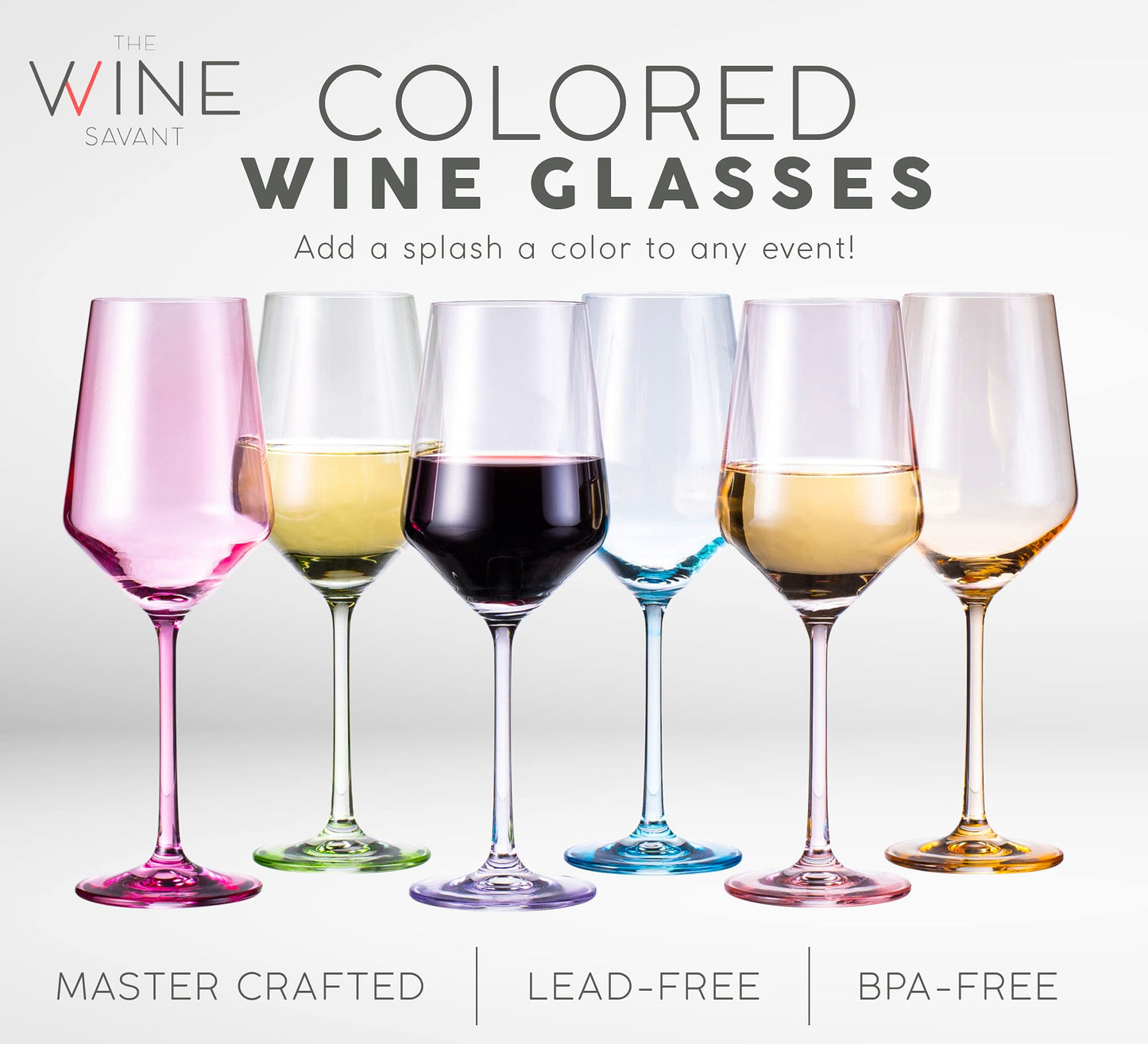 Colored Crystal Wine Glass Set of 6, Large Stemmed 12 oz Glasses, Great for all Occasions & Special Celebrations Unique Italian Style Tall Drinkware for Red & White Wine, Water Dinner, Color Glassware