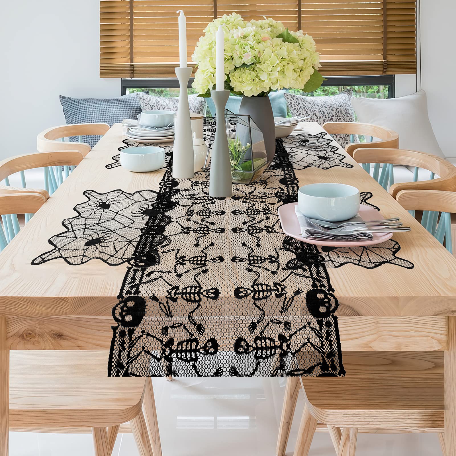 Halloween decor: these black lace scarf can be widely used to decorate your Halloween dining table, fireplace, window, door, hutch or as a backdrop. Make your home scary and weird on Halloween Day.