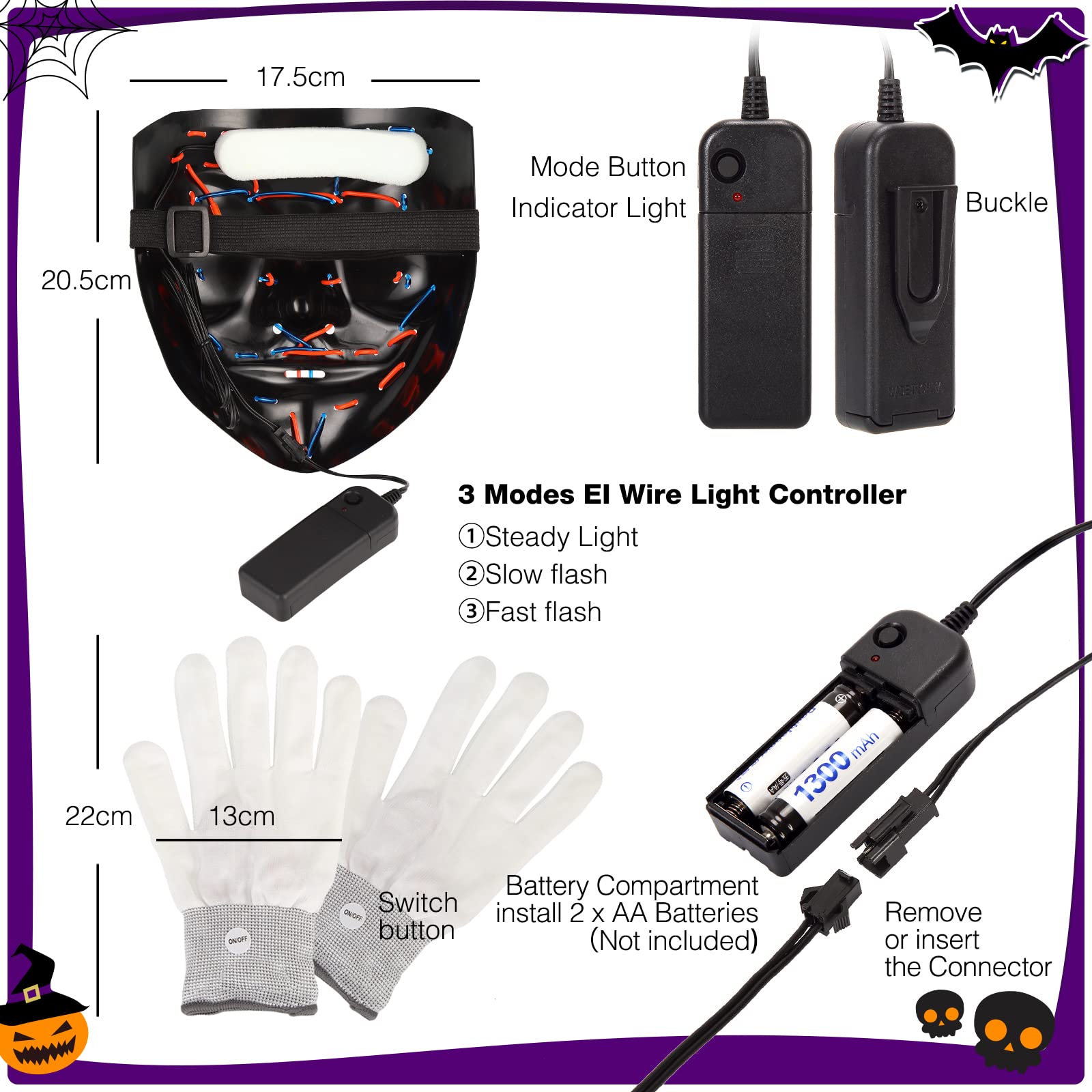 Best Gift : The led light up mask and led light gloves are definitely a good choice as a gift on Halloween for your children, and the led purge mask and gloves will definitely surprise them because most of them like cool Halloween costume.