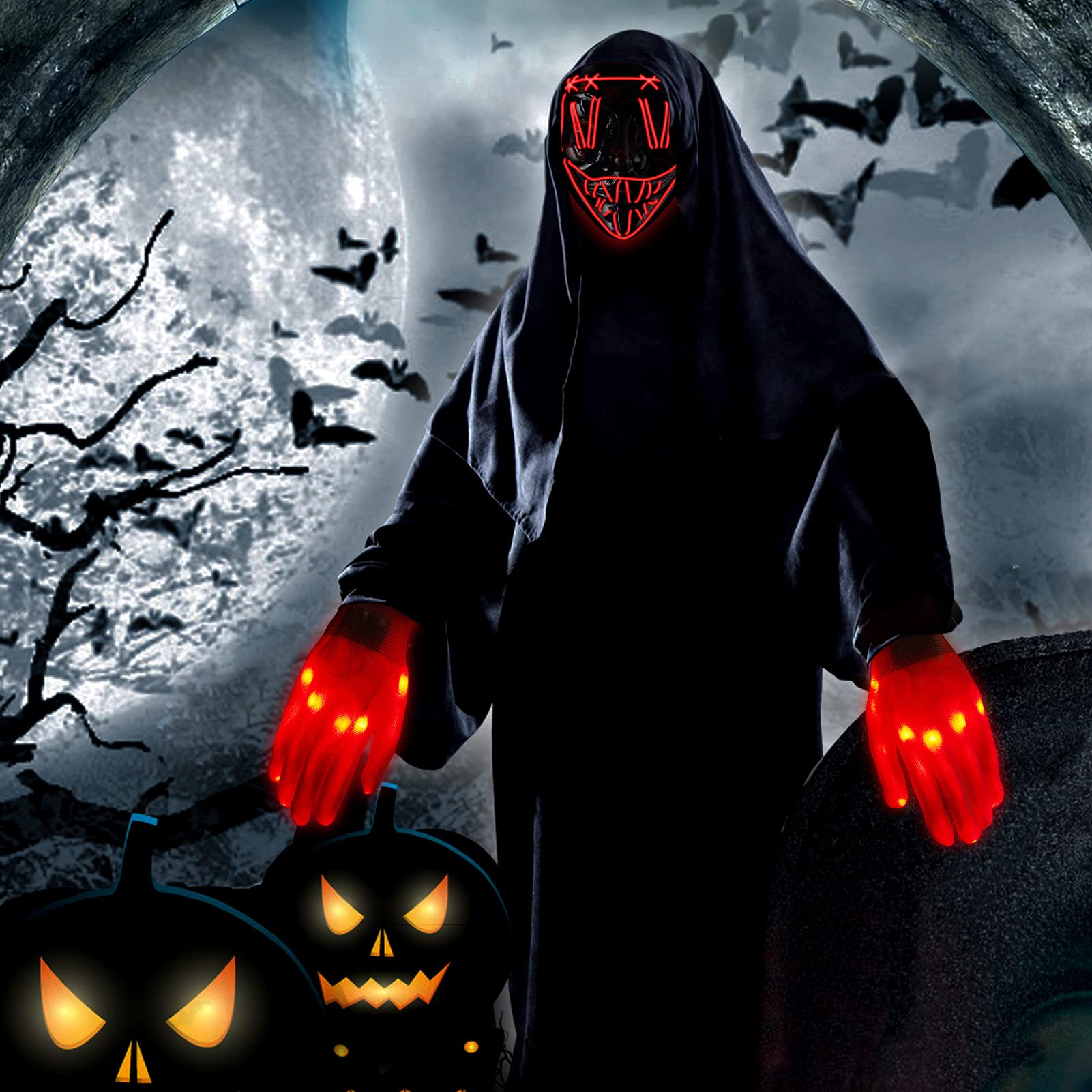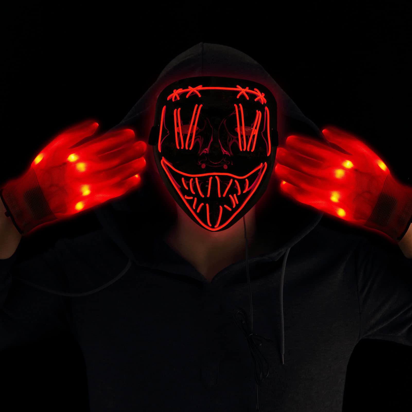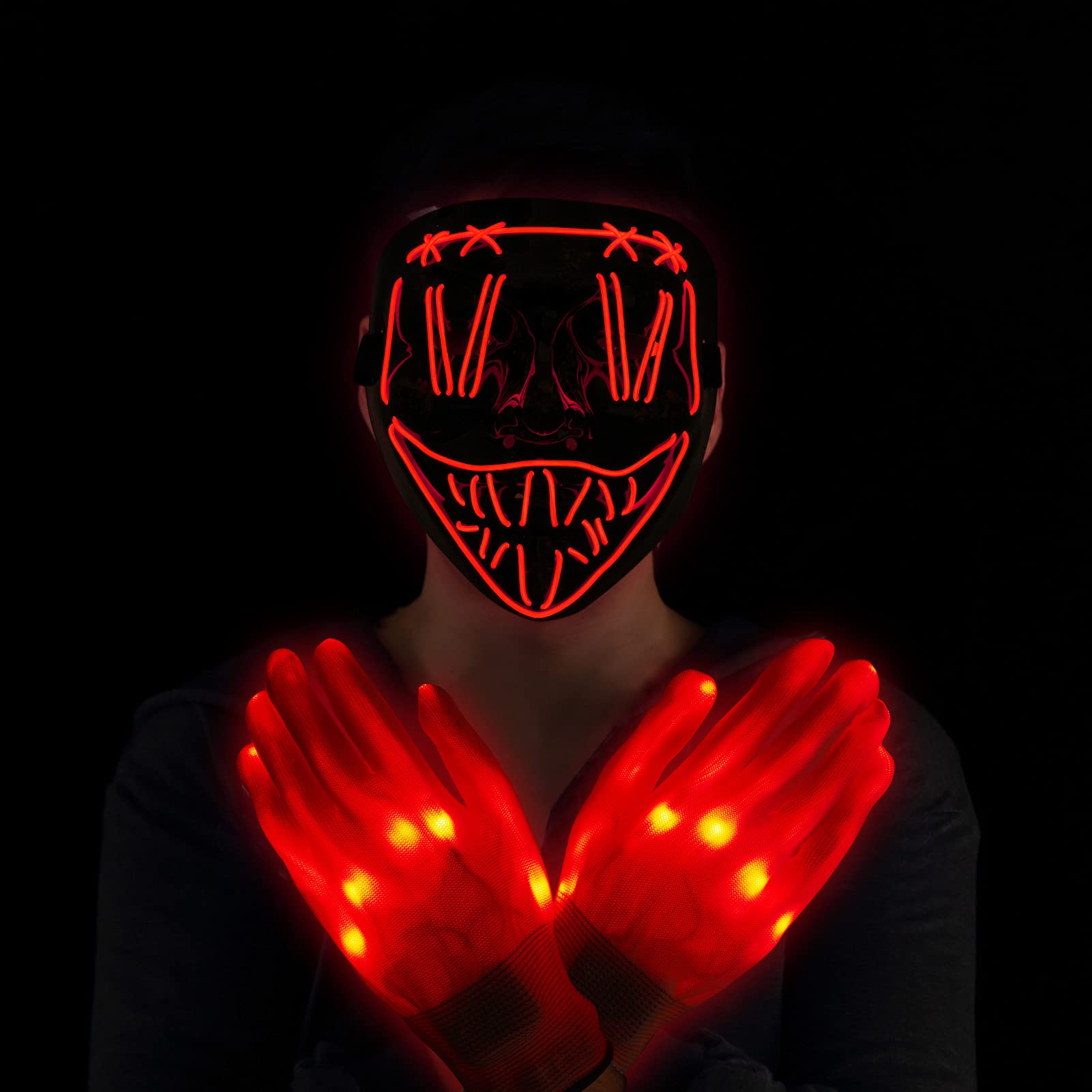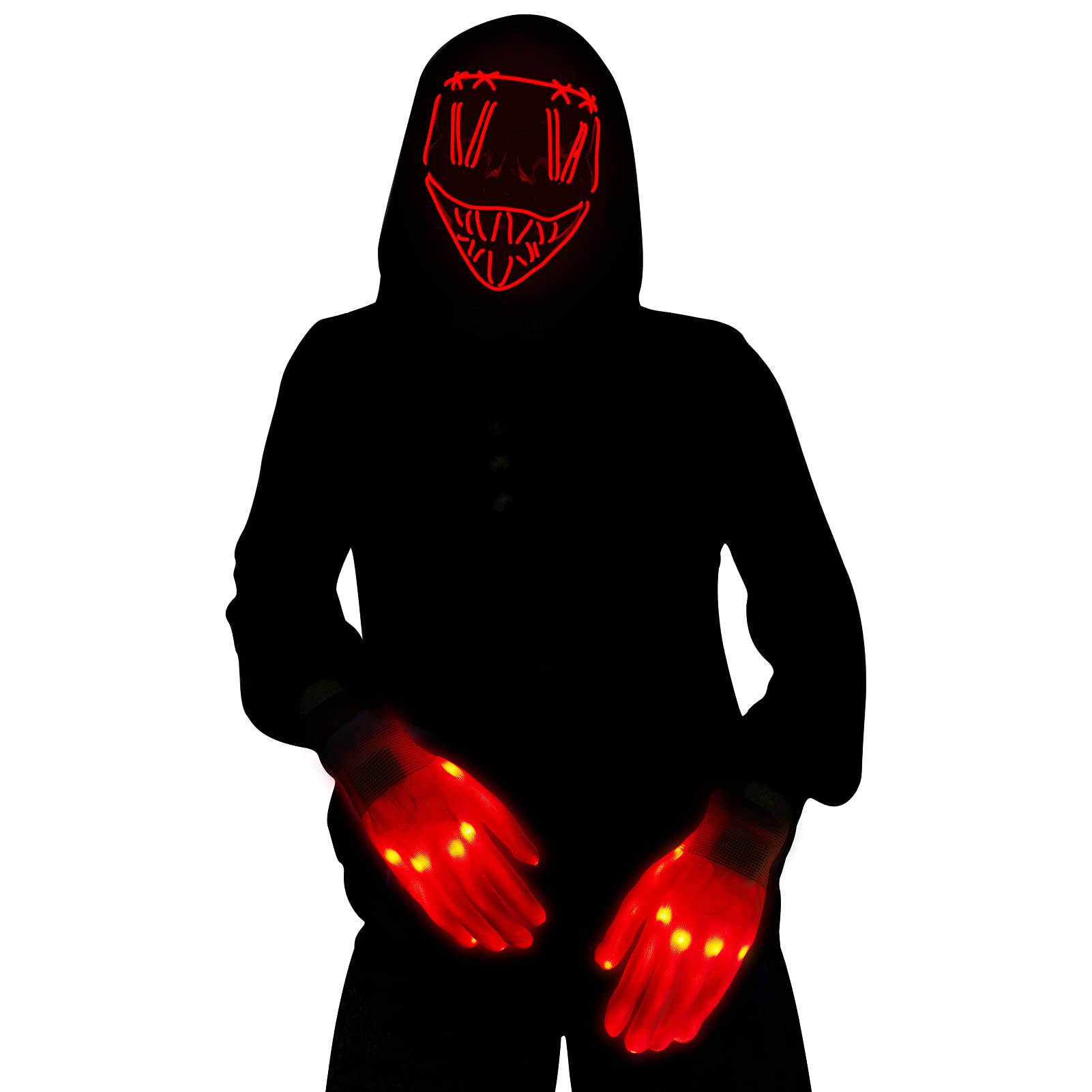 CYNDIE Halloween Scary LED Mask with Light Up Gloves Kit