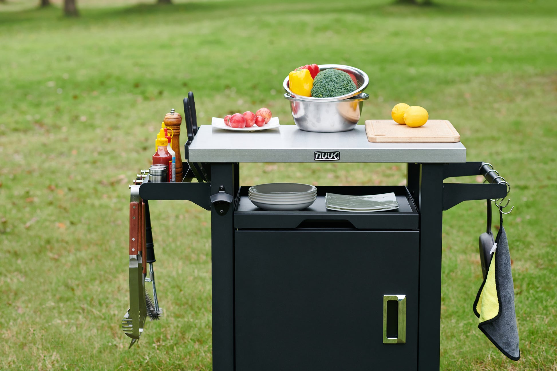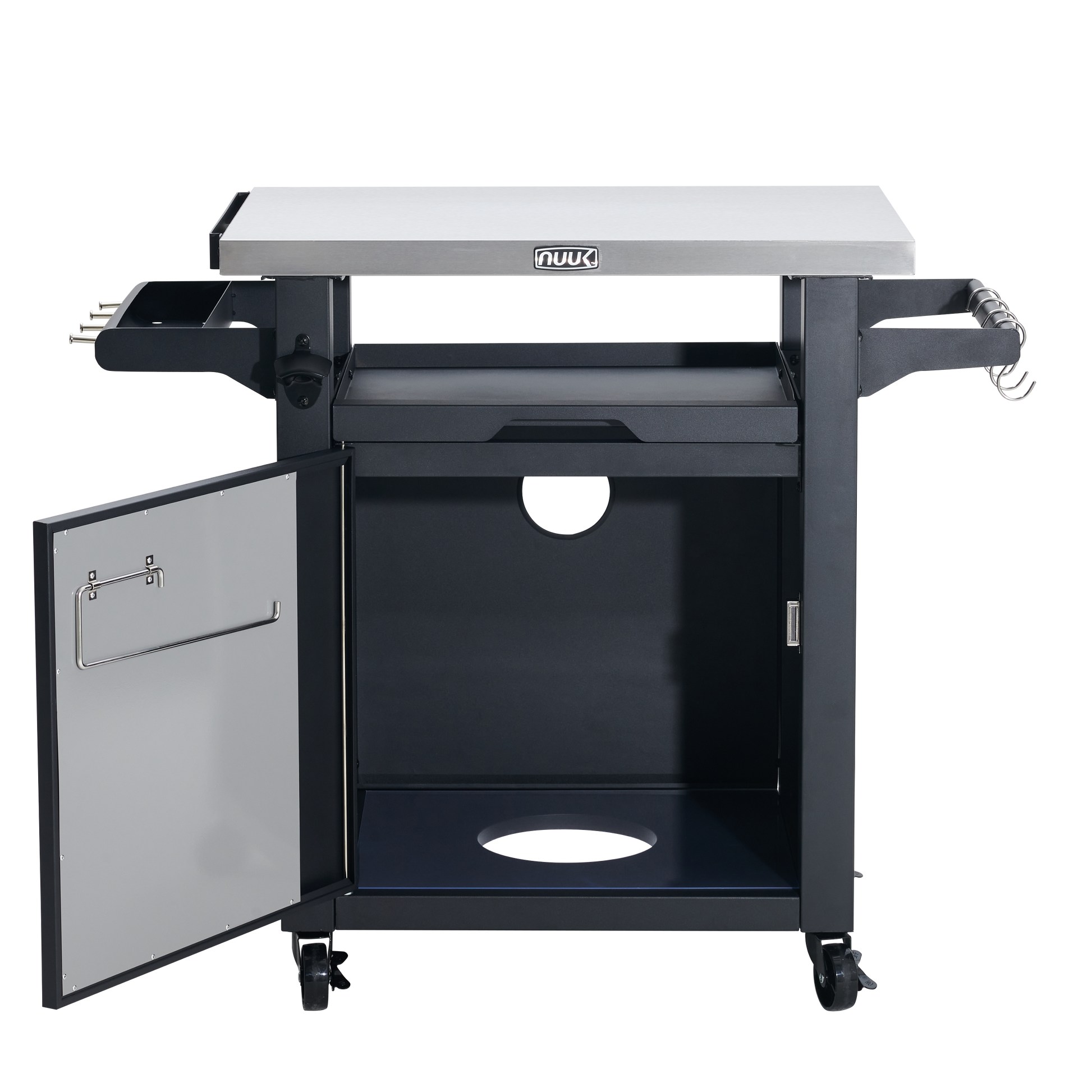 The NUUK Deluxe 30IN Outdoor Kitchen Prep Station provide everything you need during outdoor cooking, 20in x 30in stainless steel table provide large space for food prep, slide design drawer provide additional space for your cooking tools, dishware, and others material. Side condiment tray help you keep all seasoning and sauce. Single double wall door has the insulation material, provide heavy duty feeling, the large cabinet provide big room for storage and the specific propane hole help you keep your propane tank safety. This prep and storage station is the perfect item for your patio or deck. High quality caster wheel let you move the station everywhere you want. Enjoy you cooking, happy with your family with NUUK!