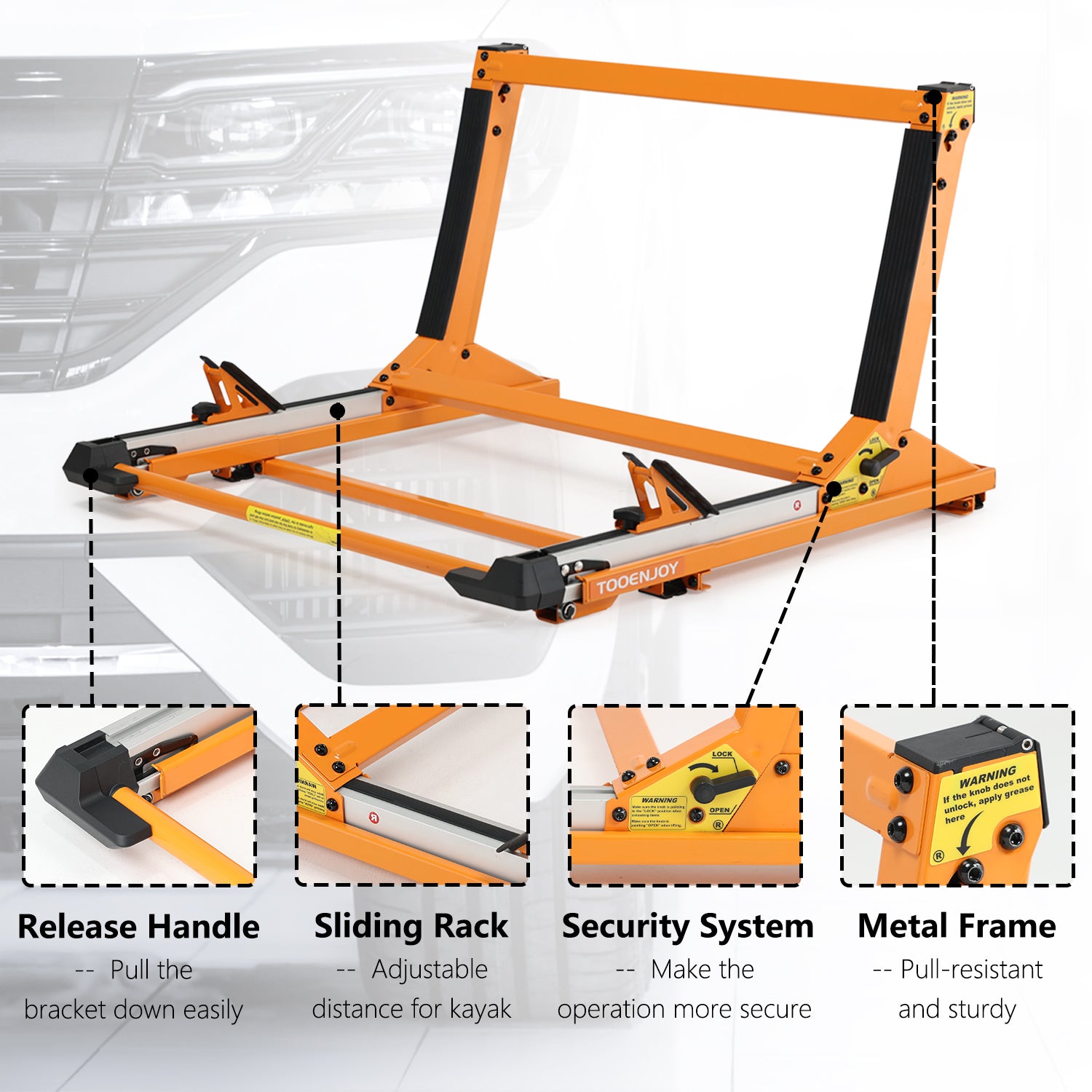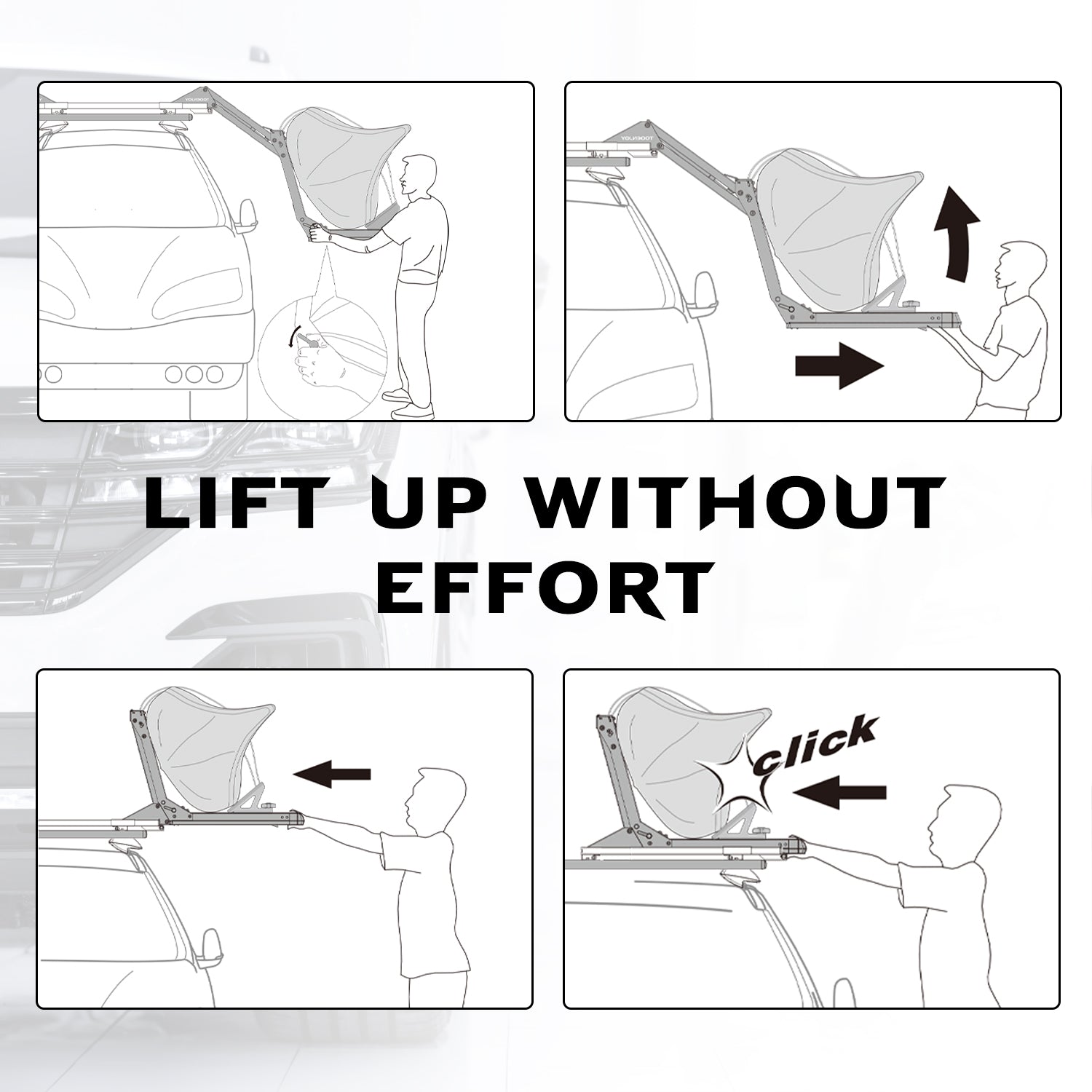 Introducing our premium lift roof rack, the ideal solution for avid outdoor enthusiasts in search of a reliable and convenient means of safely transporting their kayaks and bicycles. This versatile lift carrier boasts an innovative design, enabling you to effortlessly transport both kayaks and bikes, making your outdoor adventures smoother and more enjoyable. Experience the ease and security of our top-tier roof rack system.