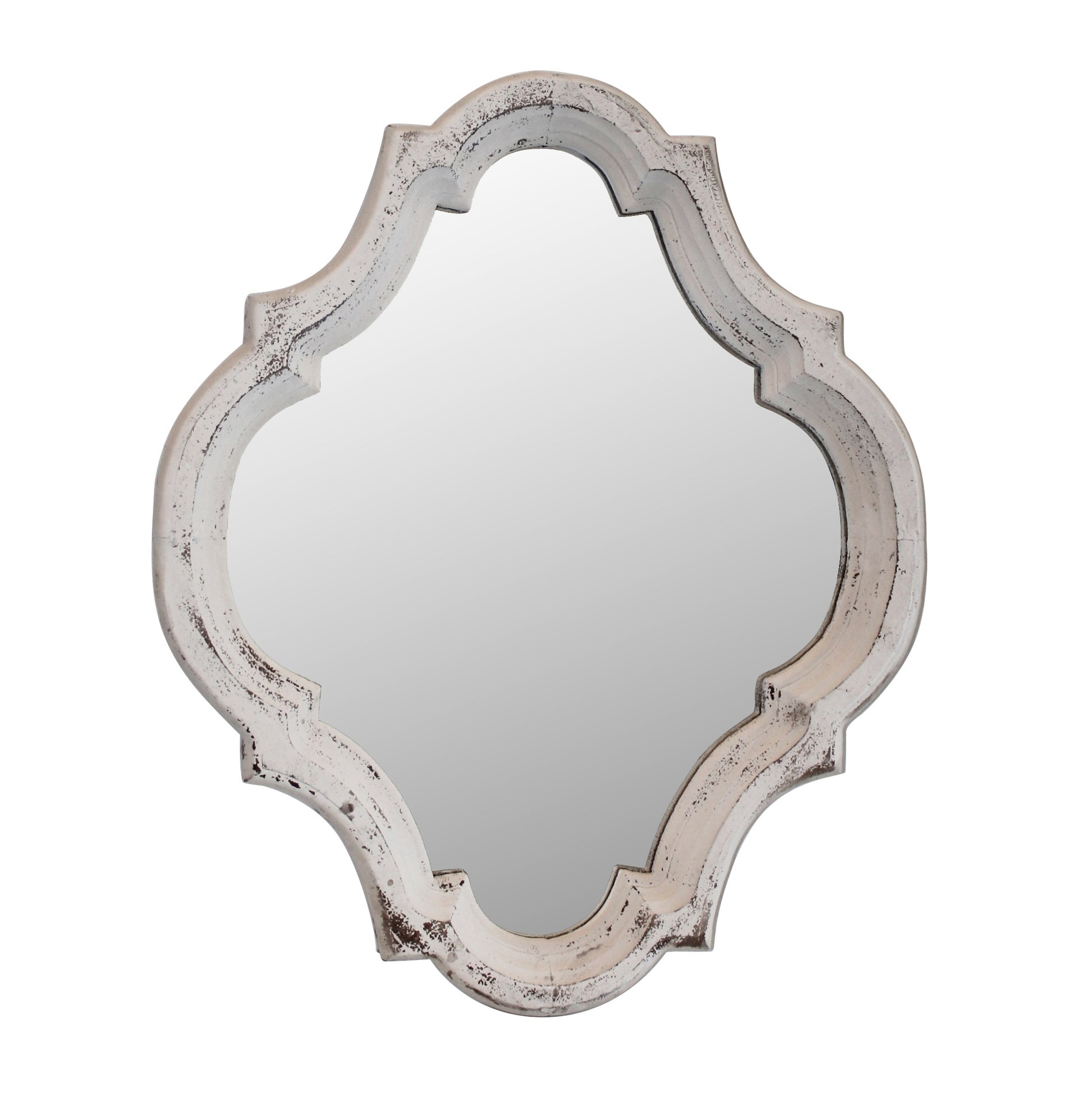 Vintage inspired mirror expertly hand-crafted of fir wood in graceful quatrefoil shape. Lightly distressed white painted finish. Ready to hang with two hangers on the back.