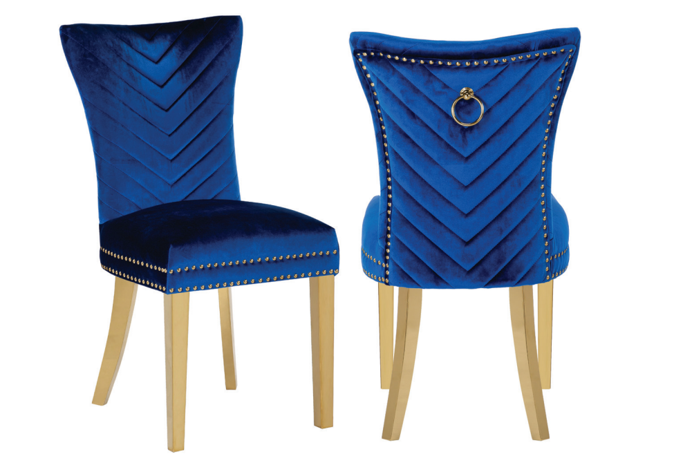 Eva 2 Piece Gold Legs Dining Chairs Finished with Blue Fabric