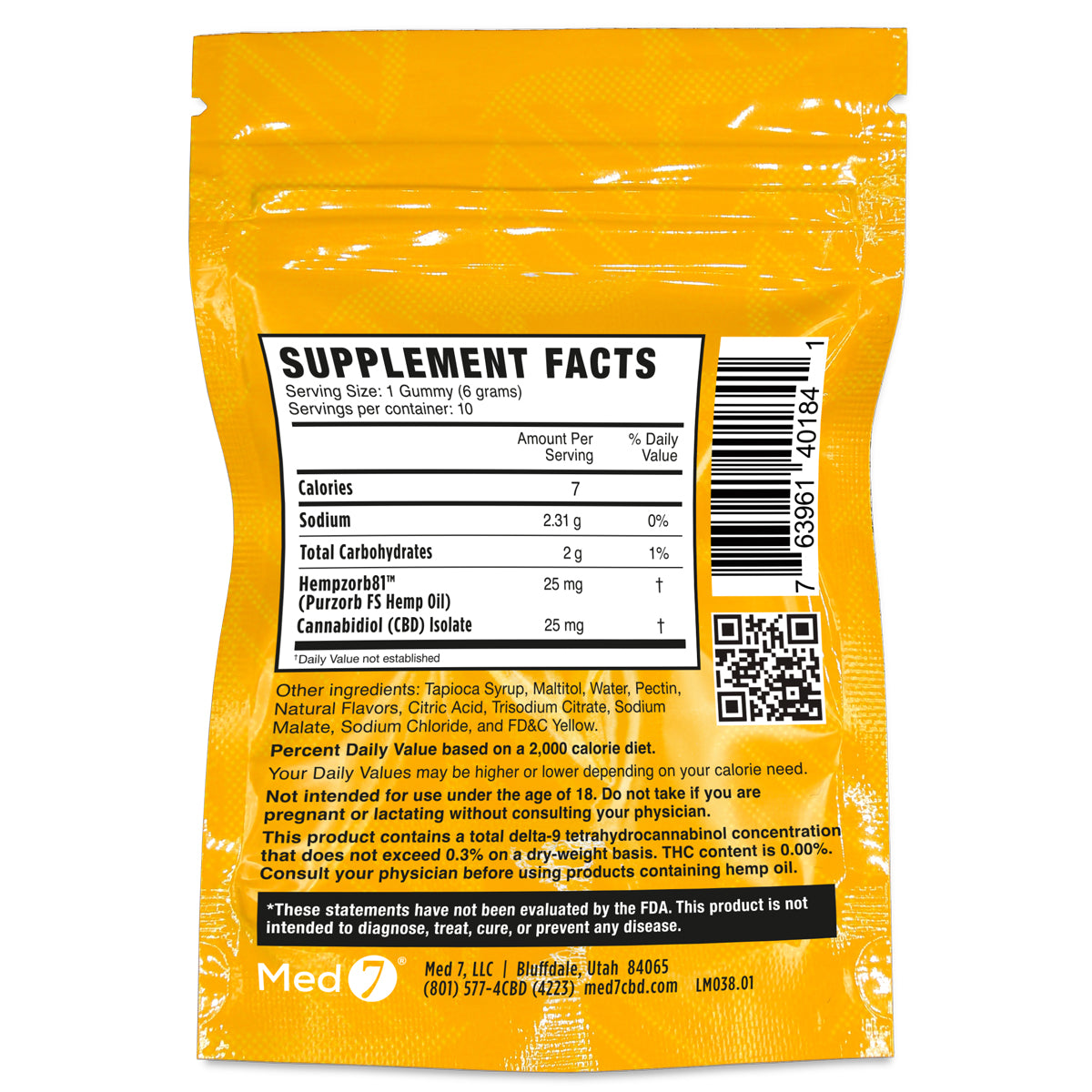 500 mg Med 7 Full Spectrum CBD Gummies 10 ct. Resealable Foil Bag | 50 mg FS ea. Gummy