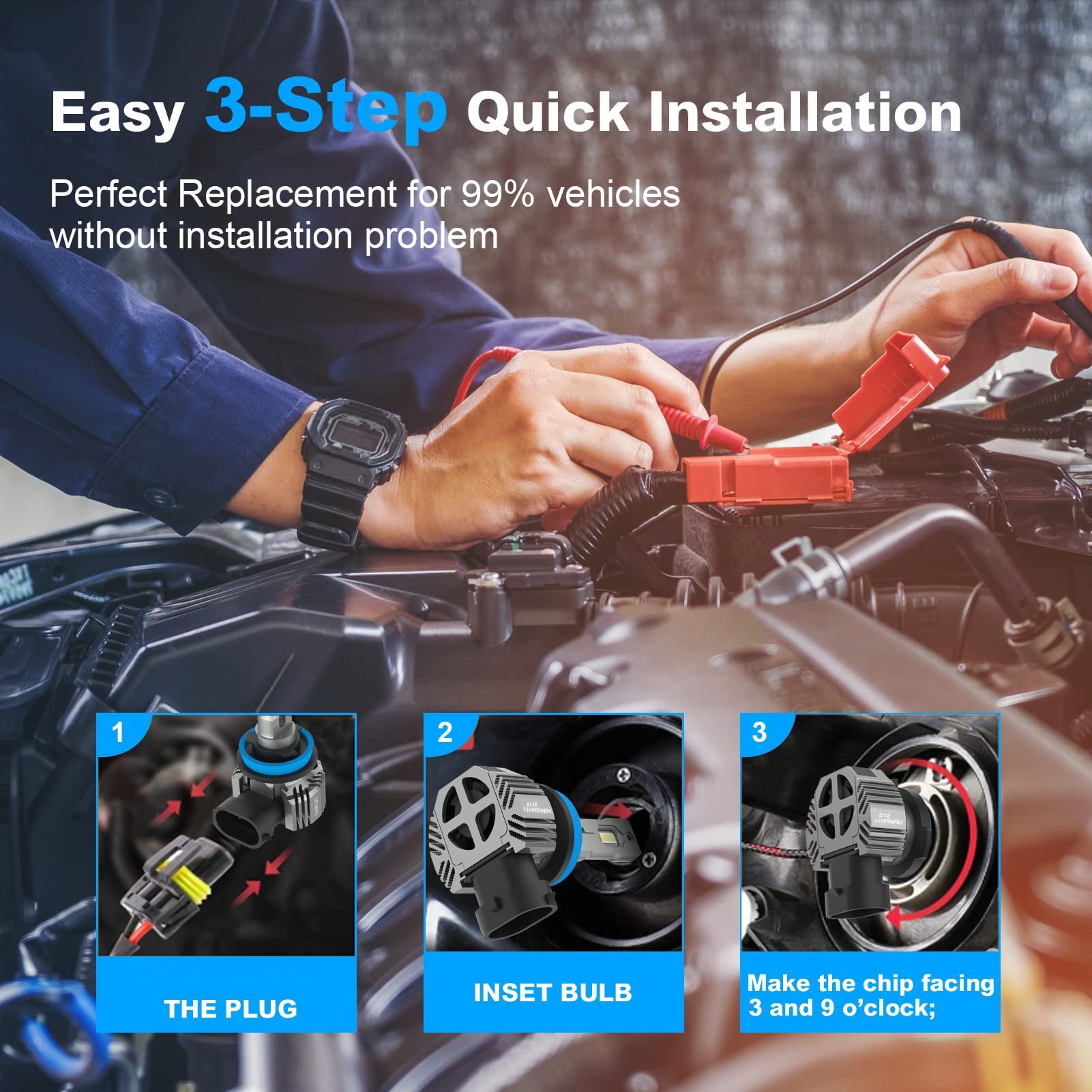 Top aluminum material body and built-in 12000RPM mute turbofan with unique hollow carving heat sink design provide efficient cooling ability. which ensures this 9012/HIR2 headlight bulbs last more than 30,000+ hours, reducing replacements and saving your money.