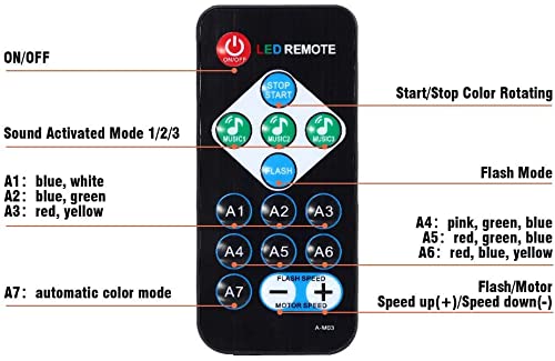 - 【Remote Controlled DJ LIGHTS】Comes with 4 remote controllers, you can use it to turn on/off the lights, change sound activated/lighting modes and control the rotating/flash speed. All functions on the remote, very easy to use.
