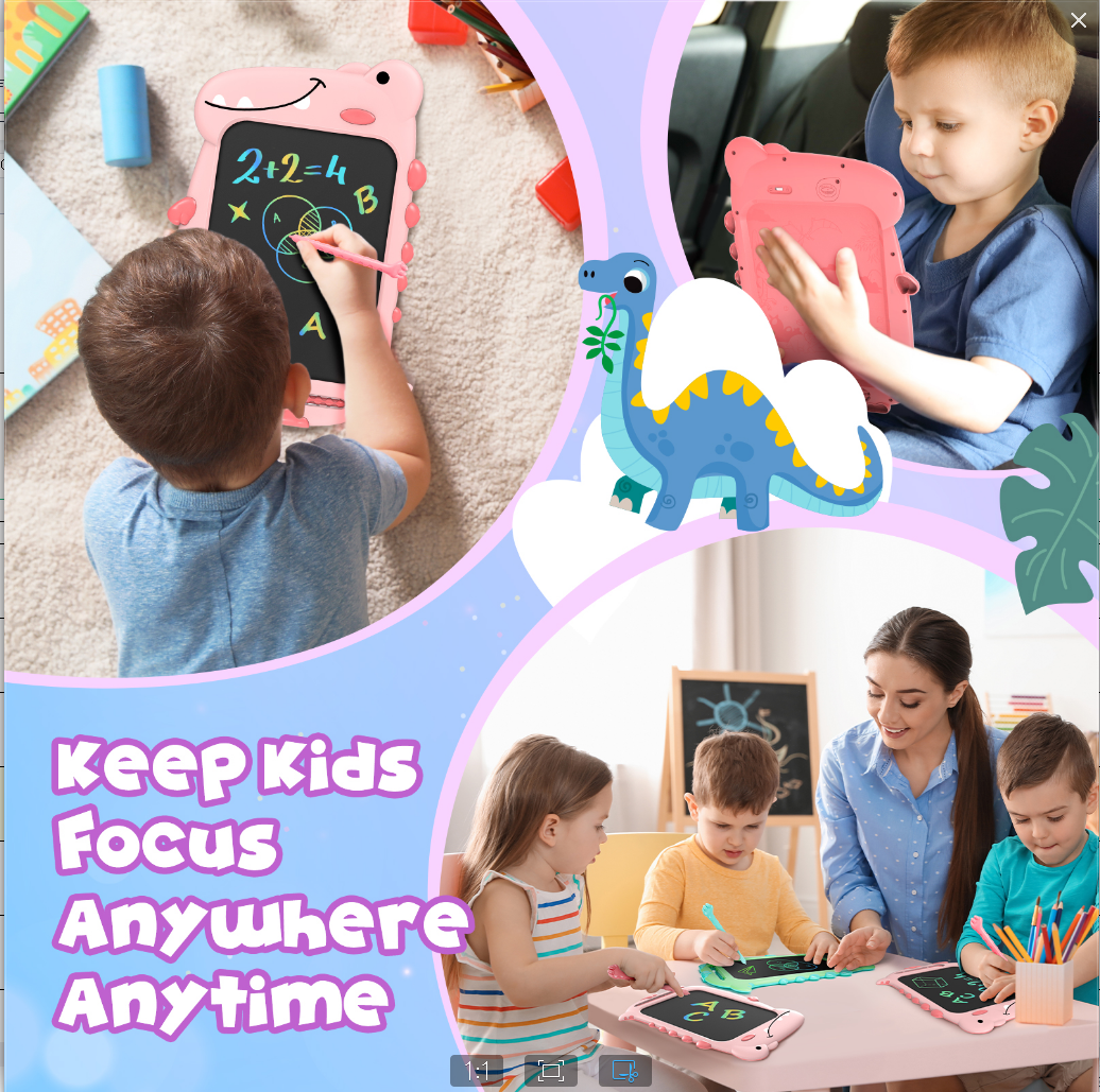 The LCD writing board provides 10 inches of space for kids to write and draw. In addition, it can stimulate creativity by freely expressing their imagination through drawing and doodling. - Make learning fun & protect eyes