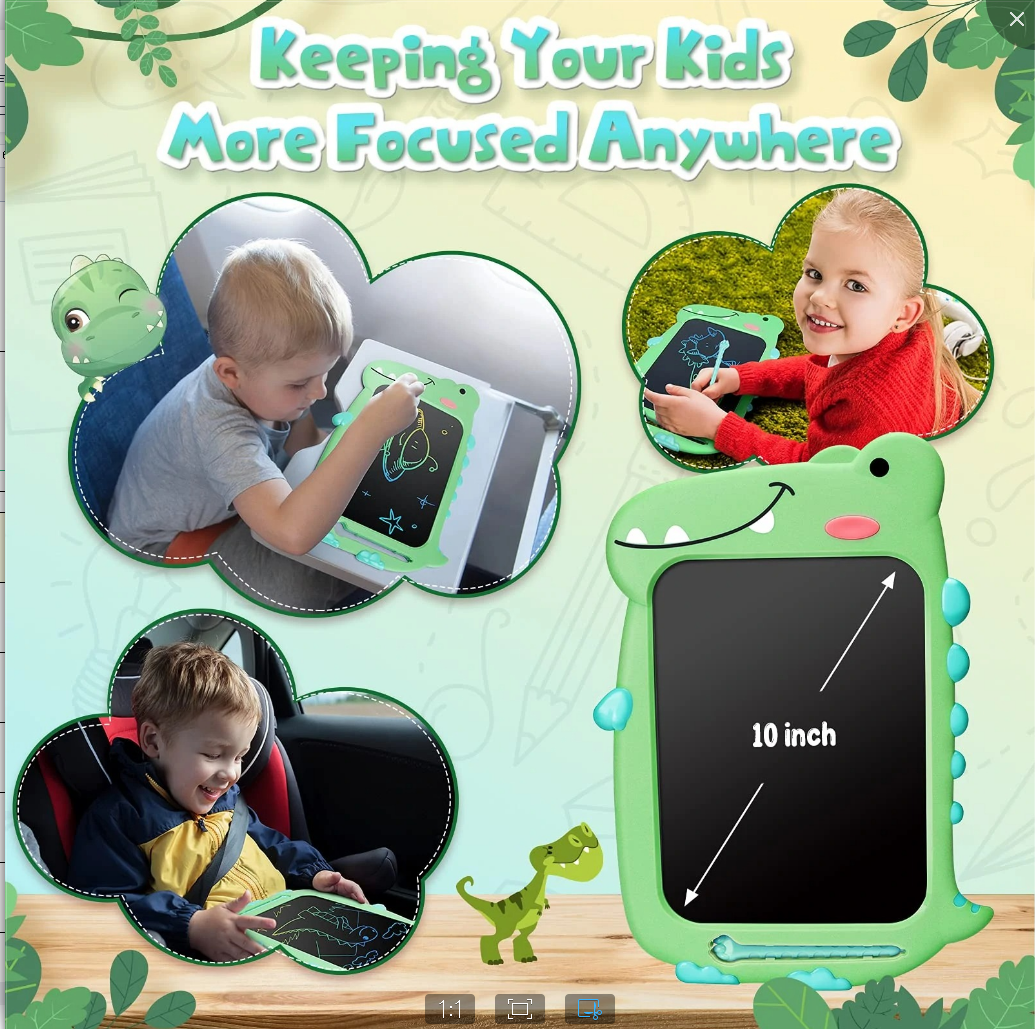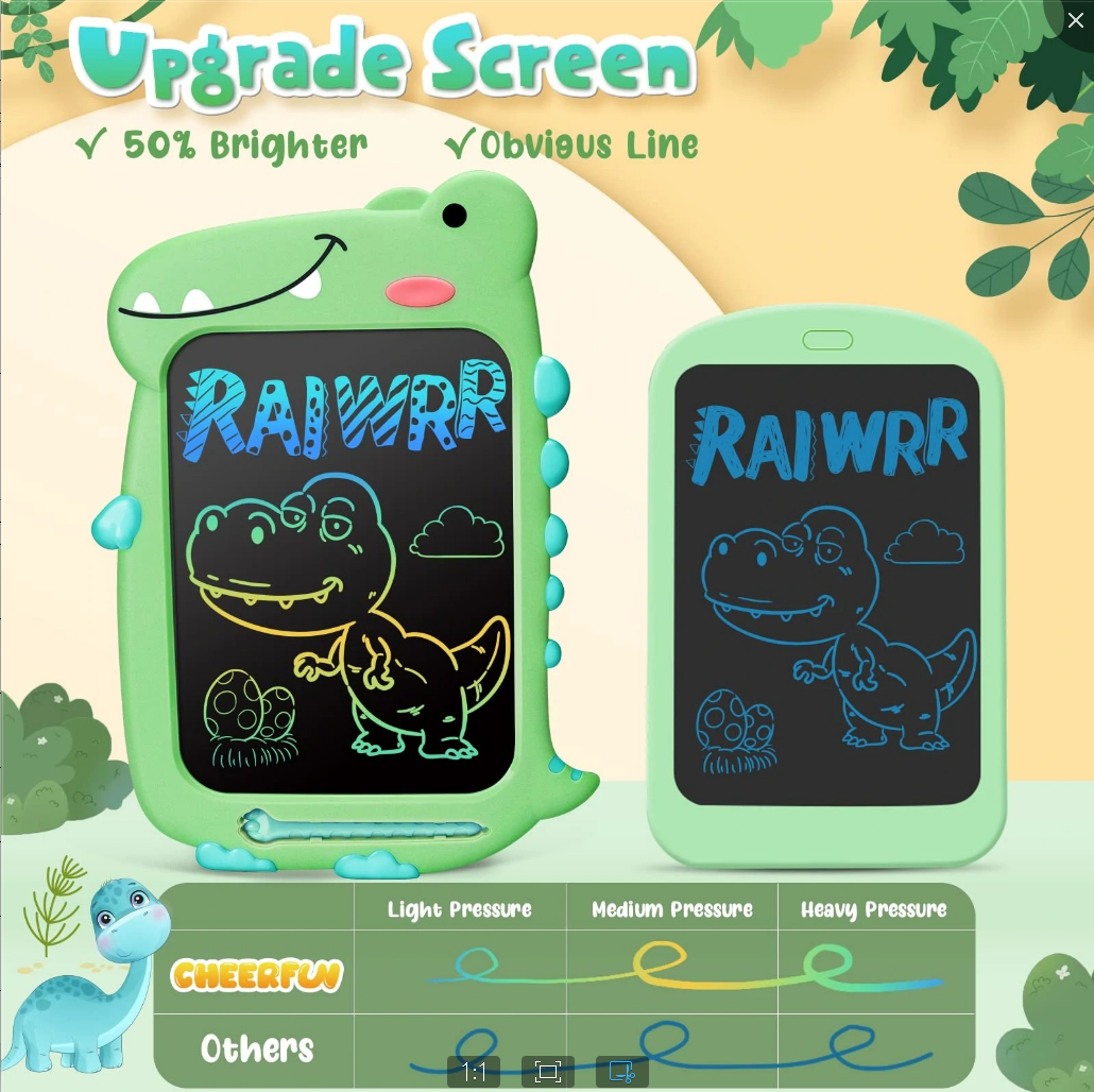The LCD writing board provides 10 inches of space for kids to write and draw. In addition, it can stimulate creativity by freely expressing their imagination through drawing and doodling. - Make learning fun & protect eyes