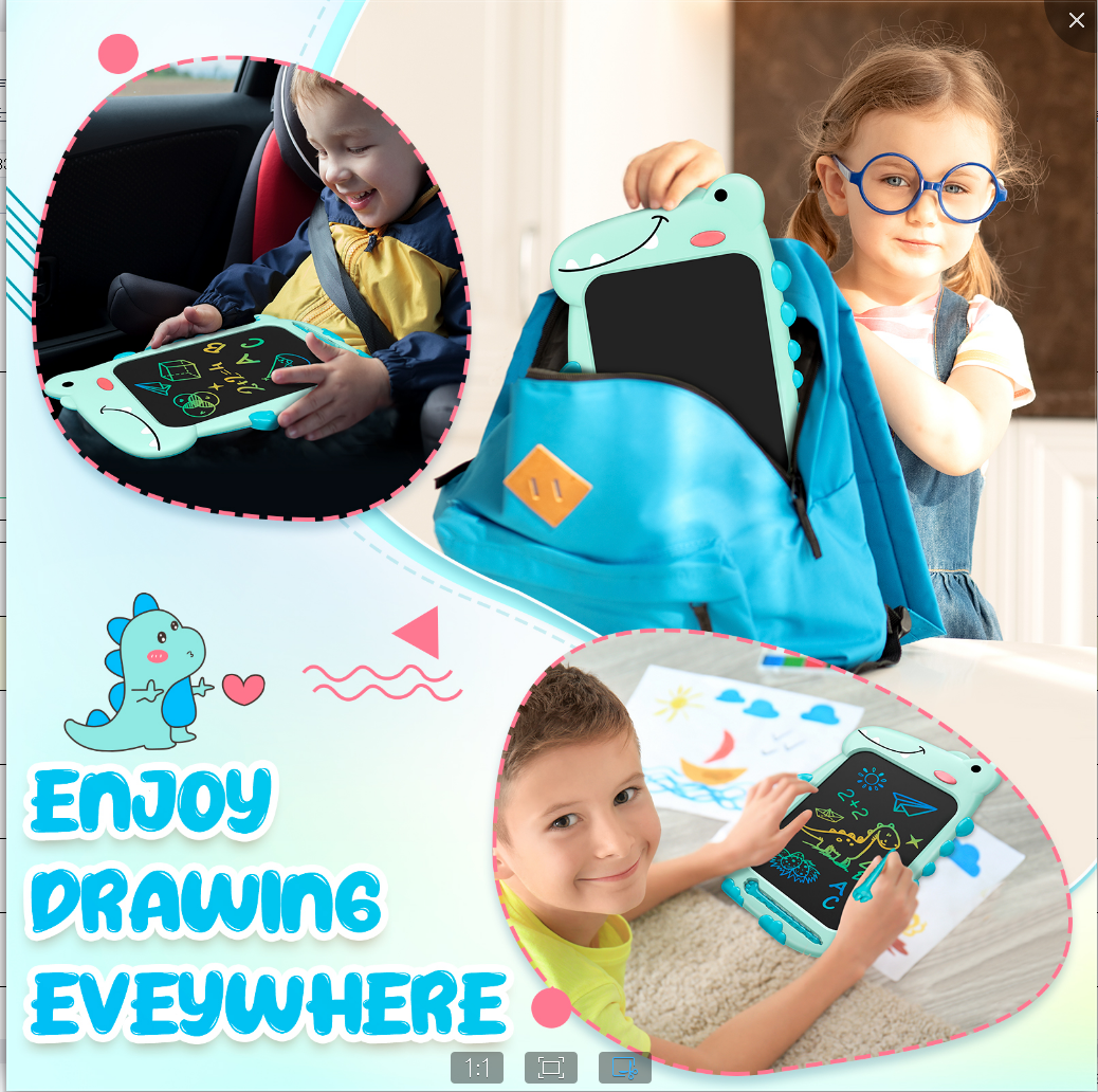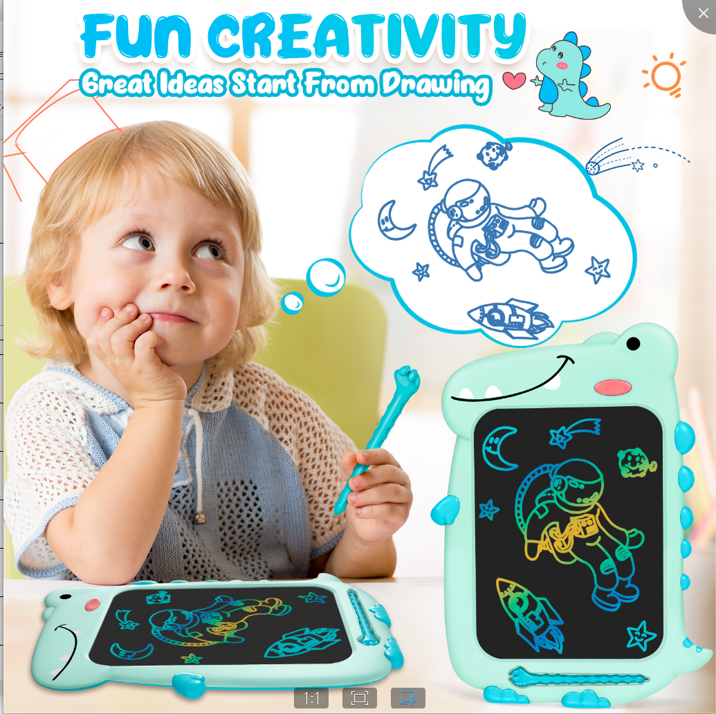 The LCD writing board provides 10 inches of space for kids to write and draw. In addition, it can stimulate creativity by freely expressing their imagination through drawing and doodling. - Make learning fun & protect eyes