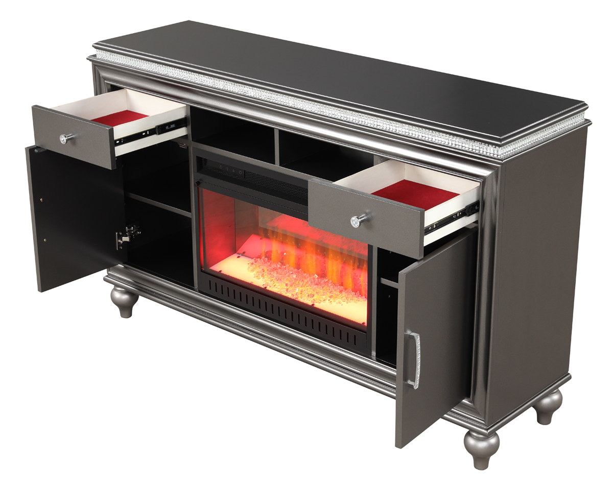 Ginger Modern TV Stand With Electric Fireplace in Gray