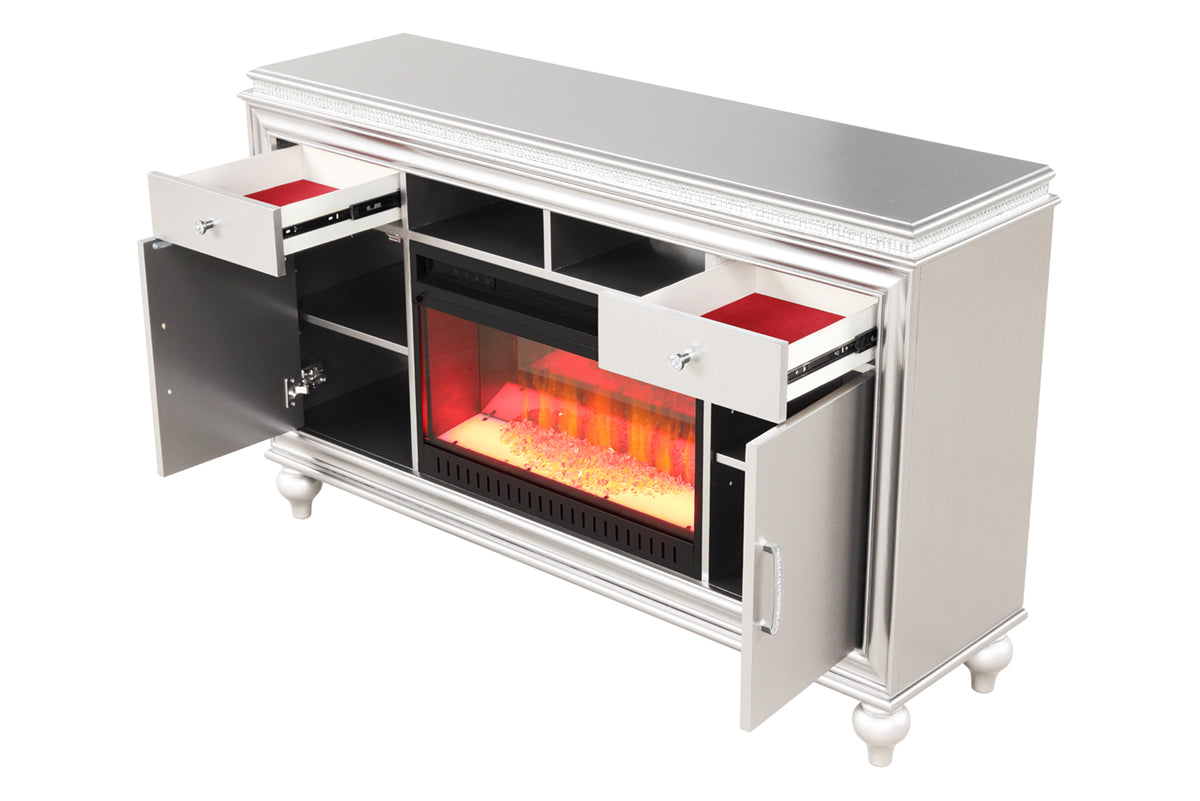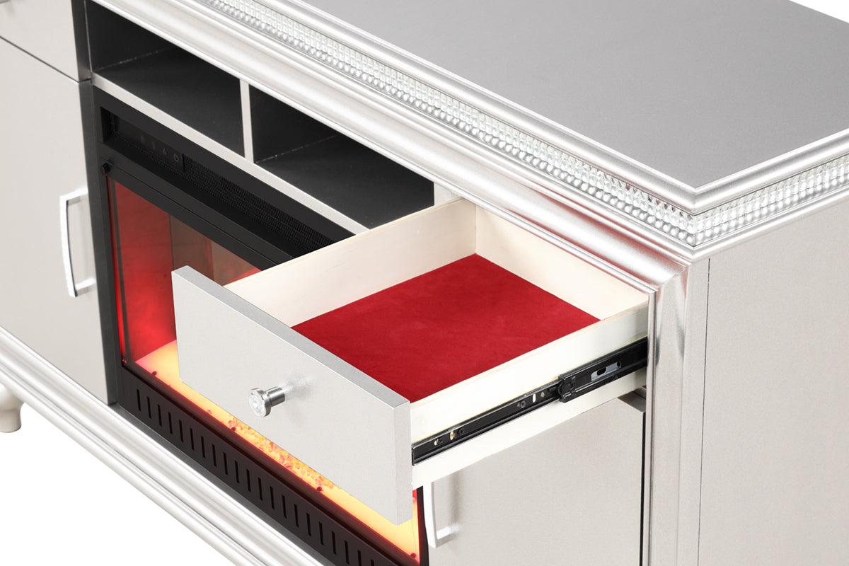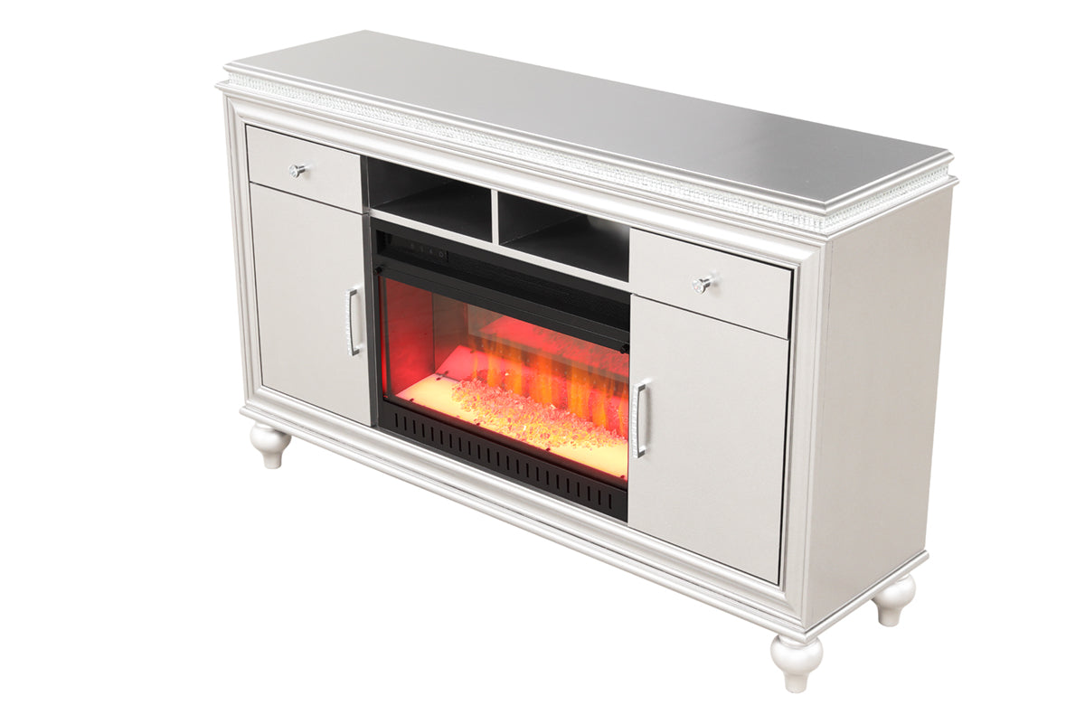 Ginger Modern TV Stand With Electric Fireplace in White