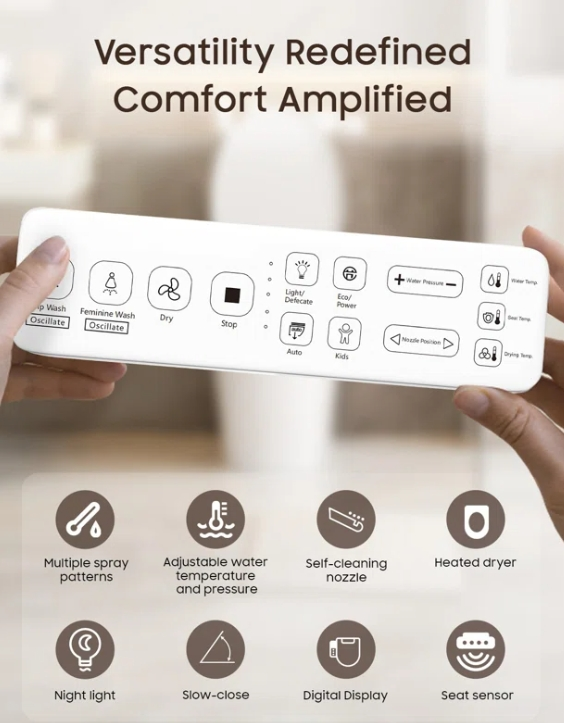 HJ-1802-LR Electronic Elongated Toilet Seat Bidet Multiple Spray Modes Wireless Remote Seat Sensor Night Light