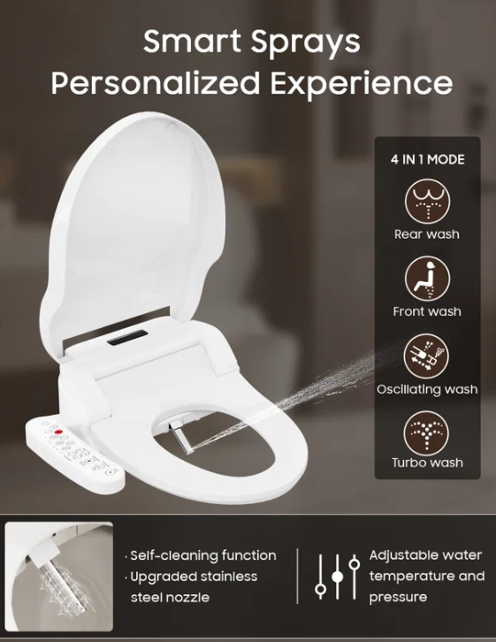 HMY-51004-SNOR Round Smart Bidet Seat Multiple Spray Modes Instant Warm Water Seat Sensor LED Night Light