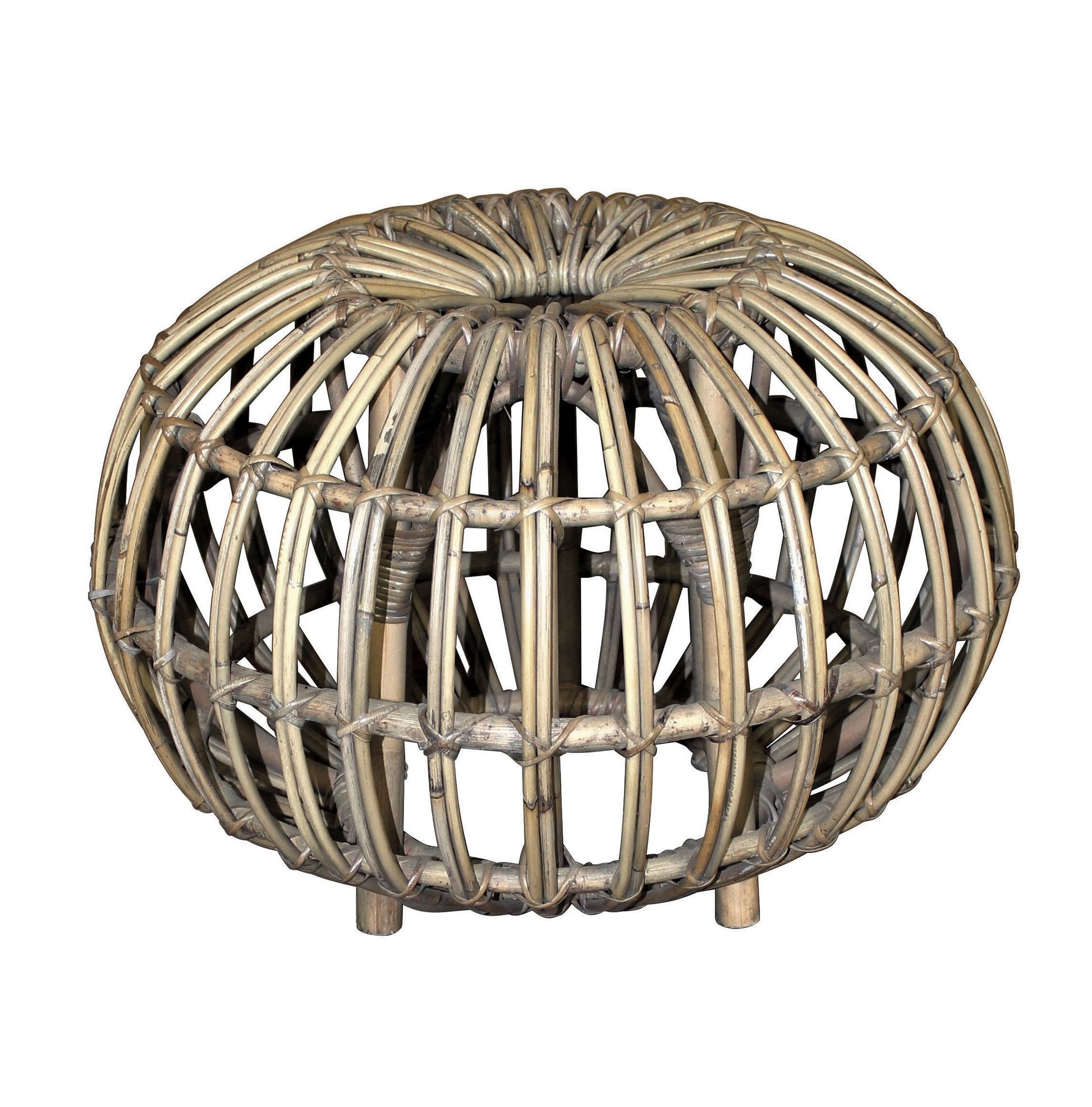 Artisan made round ottoman made of gray wash finish highly sustainable rattan.