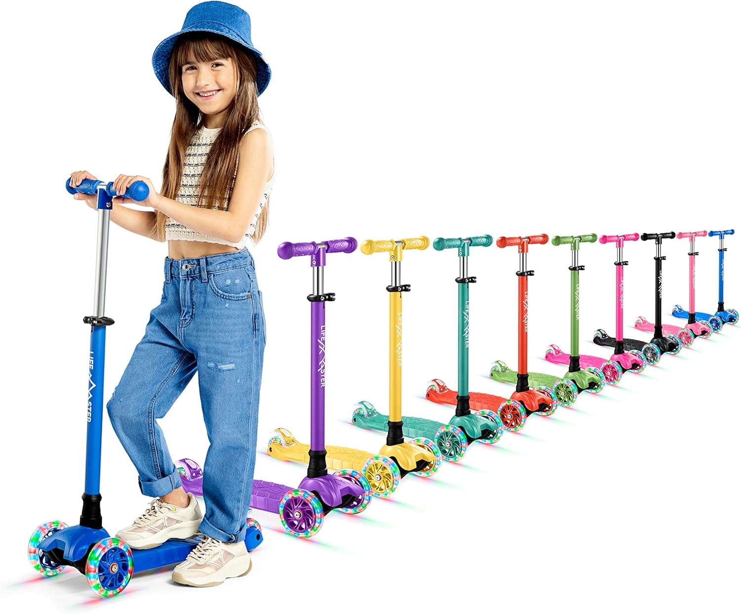 Kids Scooter – Children and Toddler 3 Wheel Kick Scooter – LED Wheel Lights Illuminate When Rolling– Adjustable Handlebar – Indoor and Outdoor Blue - Lifemaster