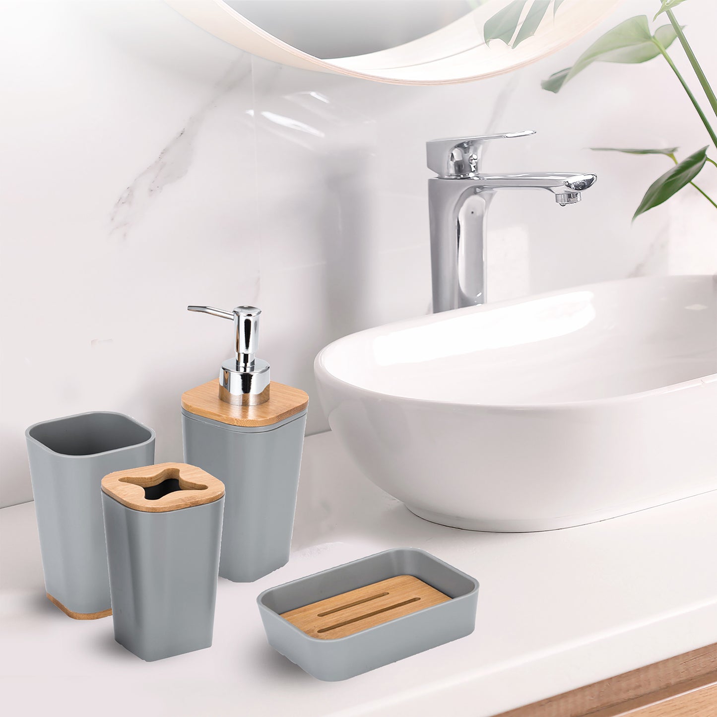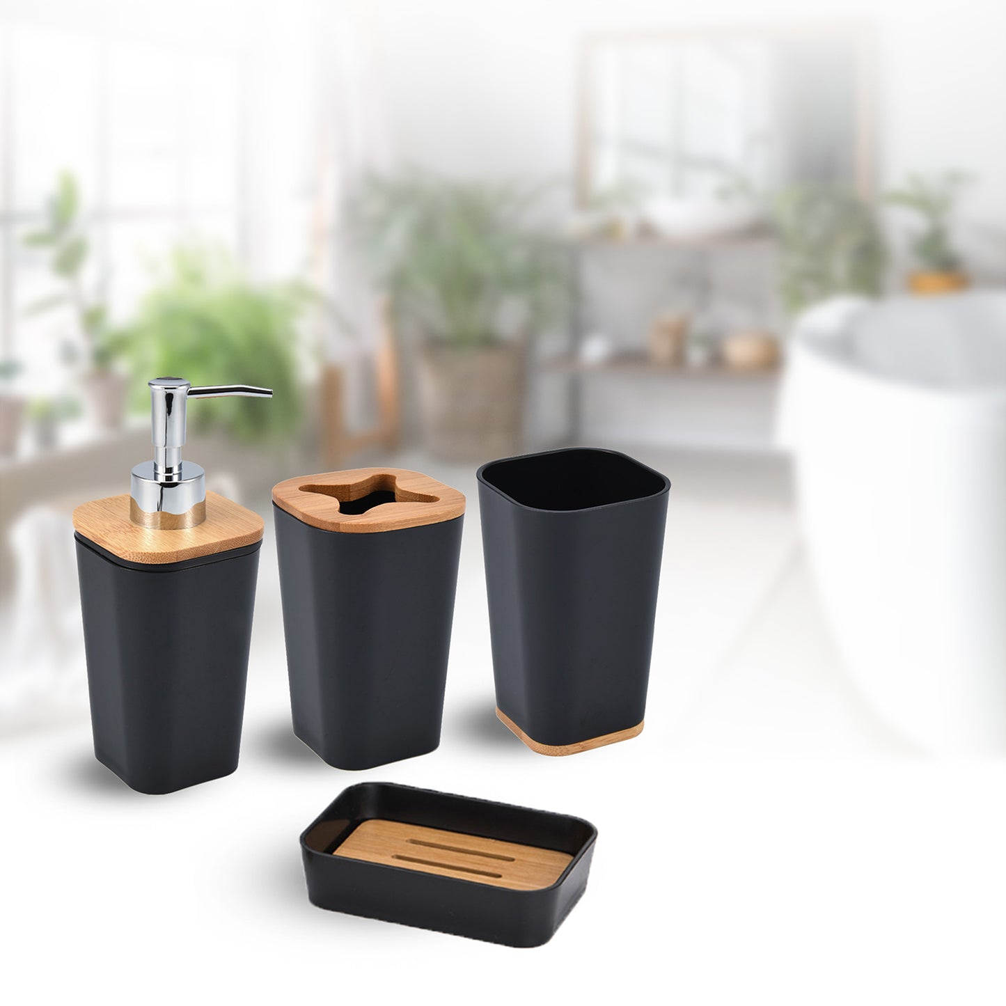 4-Piece Bathroom Set, Accessories Includes Decorative Countertop Soap Dispenser, Dish, Tumbler, Toothbrush Holder